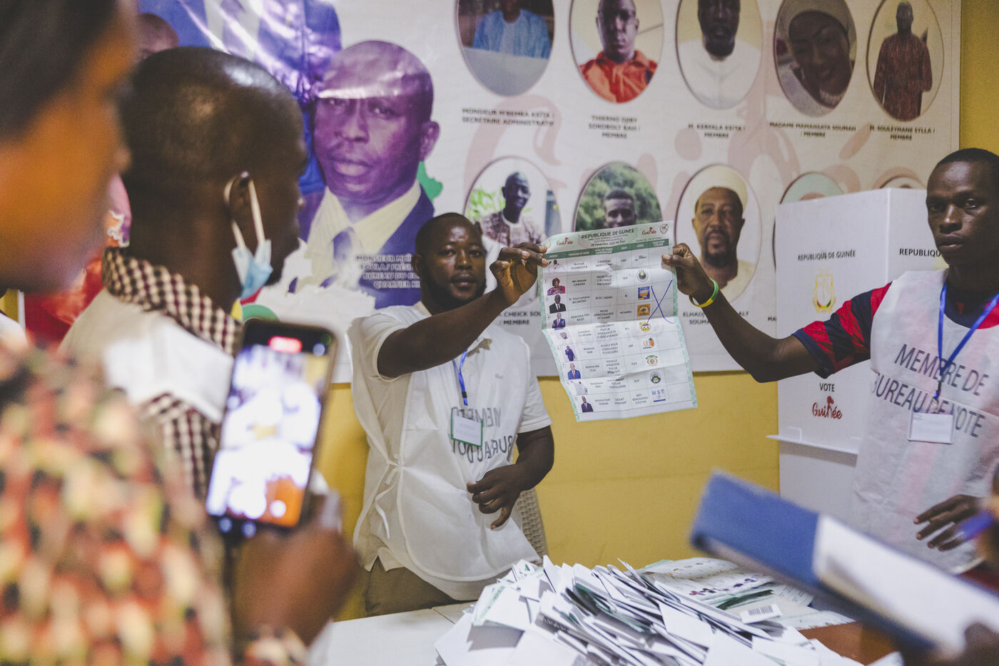 For the Guinean presidential election of 28 December 2025, around 7 million voters were called to the polls to choose among nine candidates, including General Mamadi Doumbouya (GMD). Voter turnout in the polling stations visited was estimated at over 65%. Voting took place calmly in the polling stations visited in Ratoma (both in working-class neighbourhoods and others) and in Kaloum, the administrative centre, according to several international observers interviewed. Travel was banned except for the few accredited persons, and the city’s streets, usually crowded, were deserted. Accompanied by the First Lady, Lauriane Darboux-Doumbouya, the President voted near the presidential palace in Kaloum, under the protection of a cordon of special forces that made any photography difficult. The vote count was observed in one polling station in Kipé (Ratoma), where President Mamadi Doumbouya emerged with an absolute majority. It should be recalled that his campaign slogan was “A knockout blow"”.