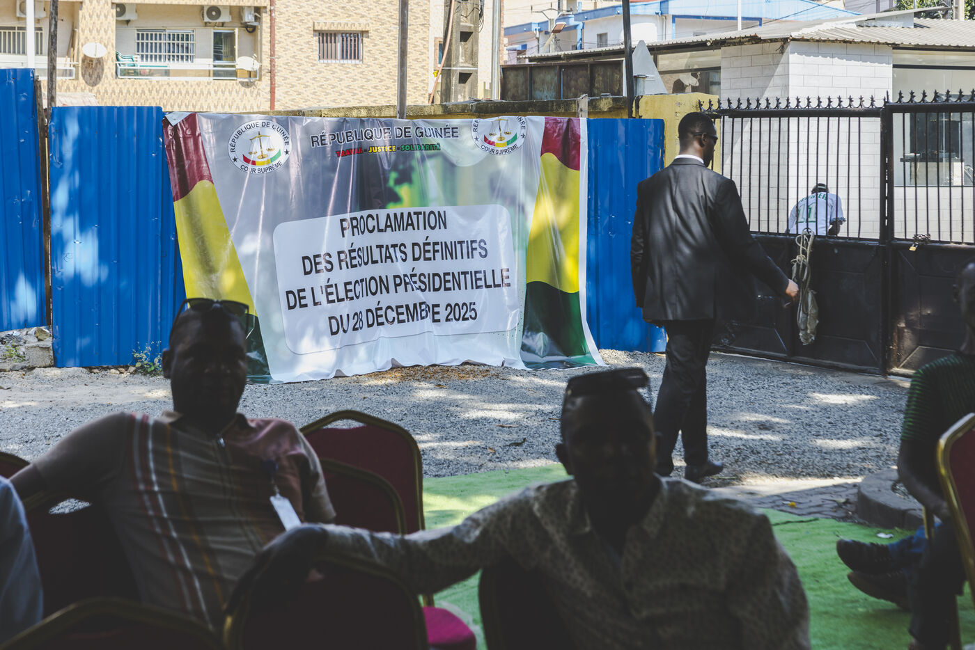Sans surprise, la Cour suprême de la République de Guinée a validé ce 4 janvier 2026 la victoire au premier tour de l'élection présidentielle pour un mandat de 7 ans, du général Mamadi Doumbouya avec plus de 86% des voix. Elle a précisé qu'un de ses principaux rivaux, Yéro Baldé du Frondeg, s'était désisté de son recours devant la Cour suprême. Les journalistes étaient invités à assister à la cérémonie devant un écran géant dans la cour, alors que quelques candidats malheureux, membres du gouvernement et des représentants du corps diplomatique ont pu assister dans la salle d'audience à la proclamation. Les forces spéciales, comme à l'accoutumée, ont sécurisé en masse l'événement.