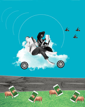 Série de photomontages et collages sur le thème de l'Intelligence Artificielle, des voitures autonomes et de l'agriculture numérique .