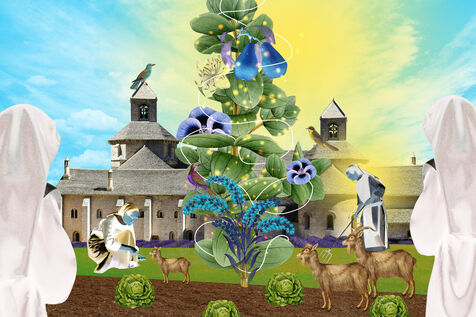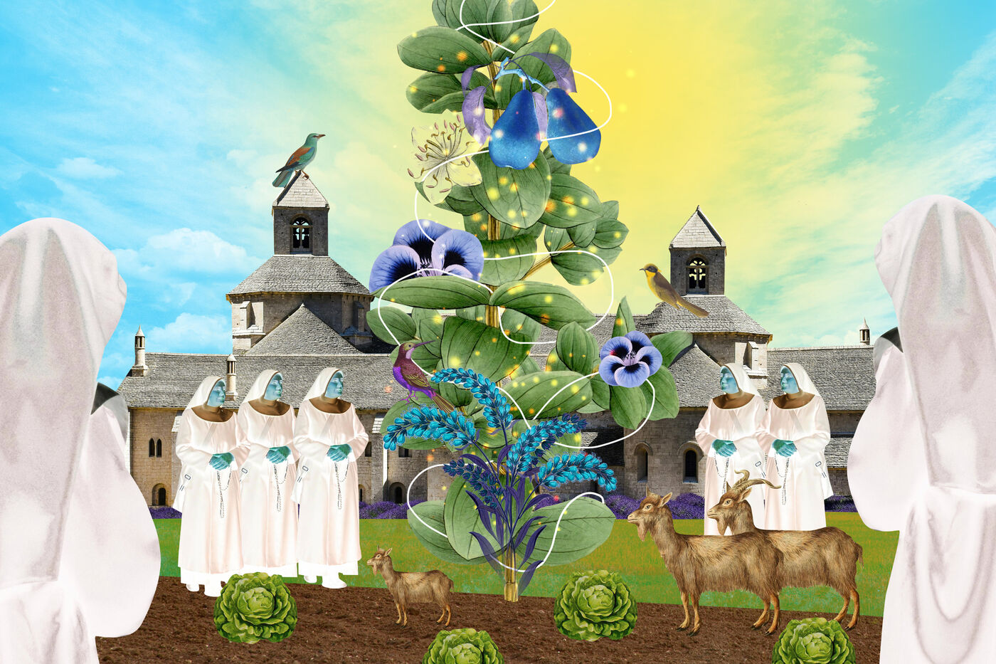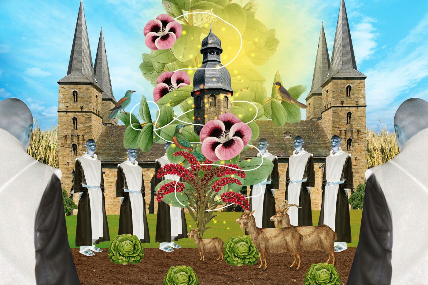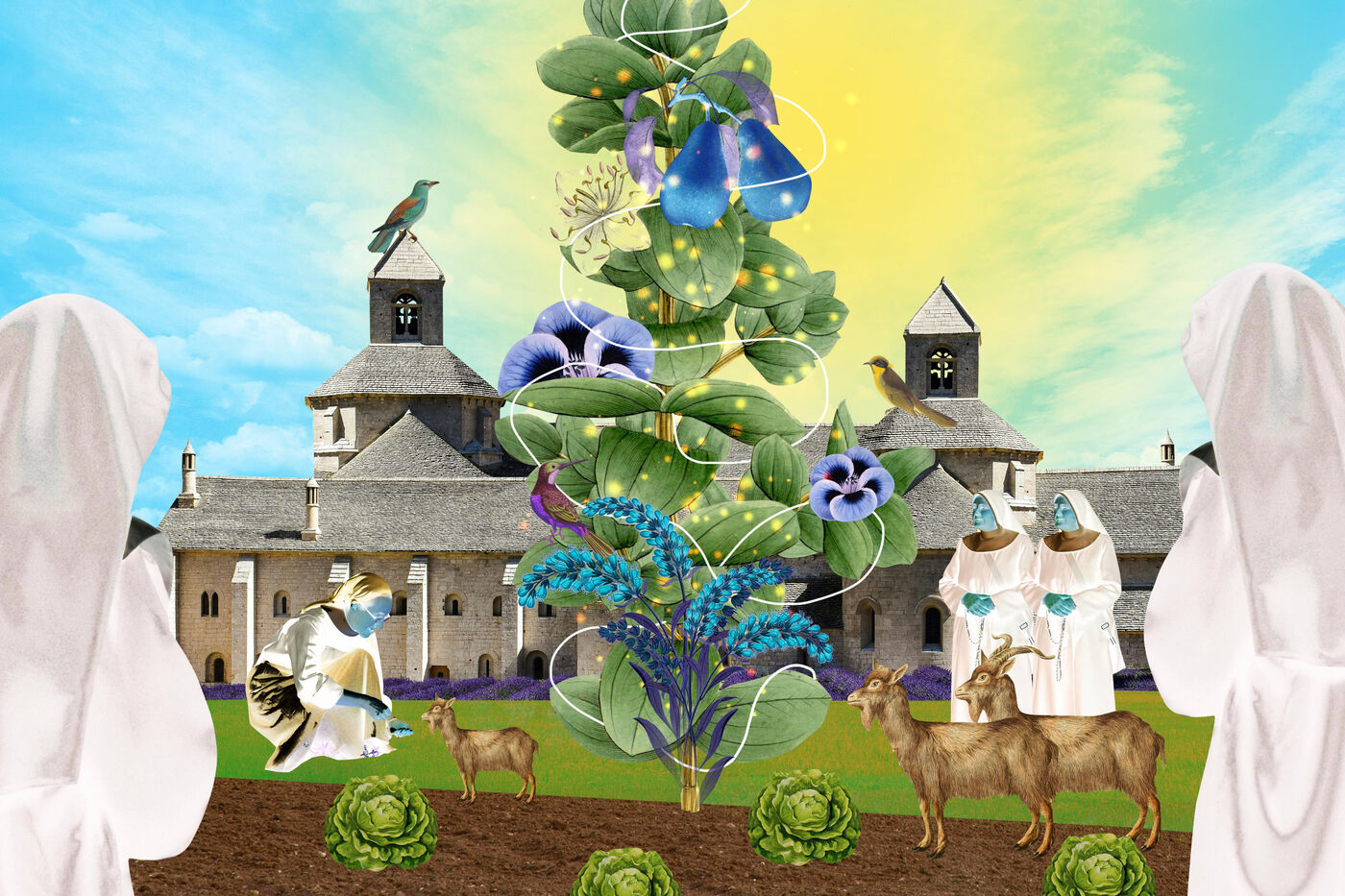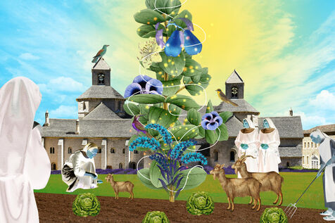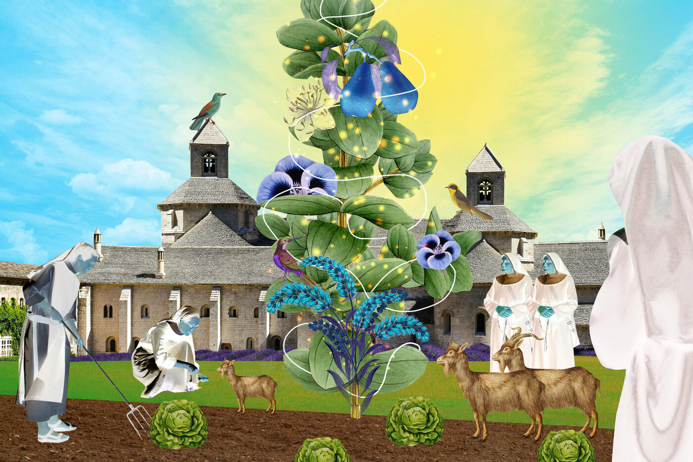 Série de collages autour de l écologie et la spiritualité : la solidarité, la justice, les arts, l'agriculture, la parentalité, le dialogue intereligieux autour des questions écologiques.
