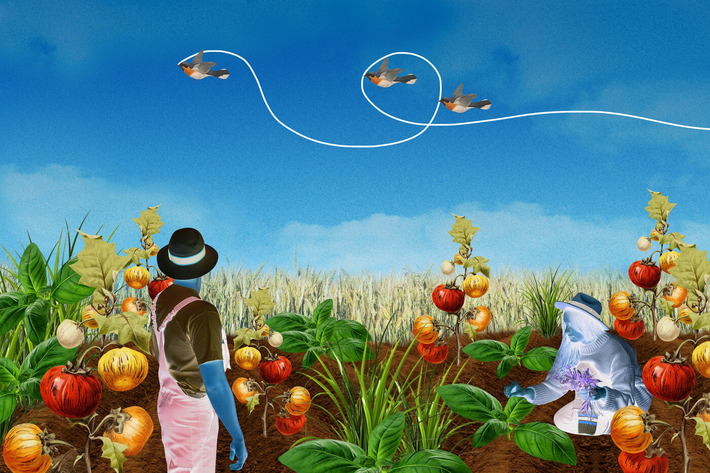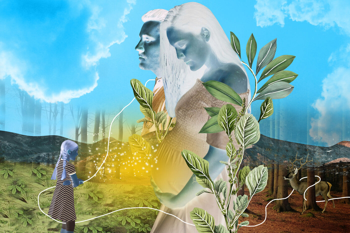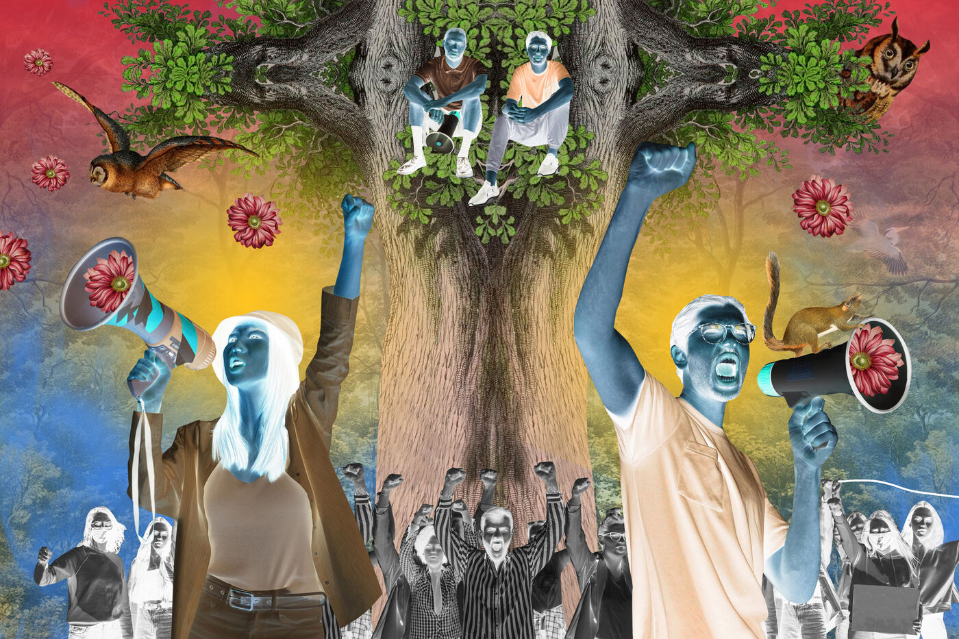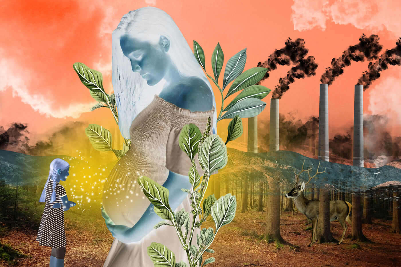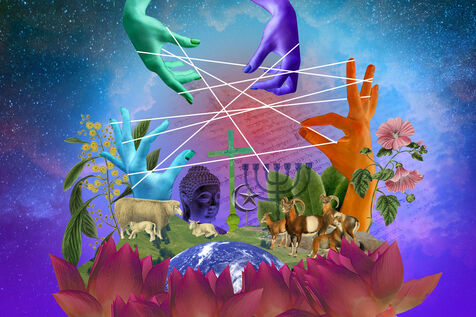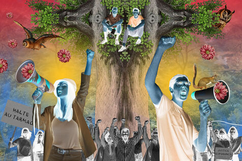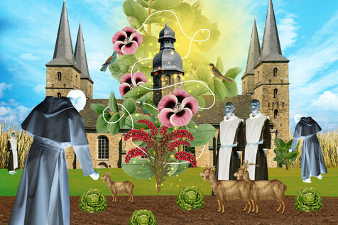 Série de collages autour de l écologie et la spiritualité : la solidarité, la justice, les arts, l'agriculture, la parentalité, le dialogue intereligieux autour des questions écologiques.