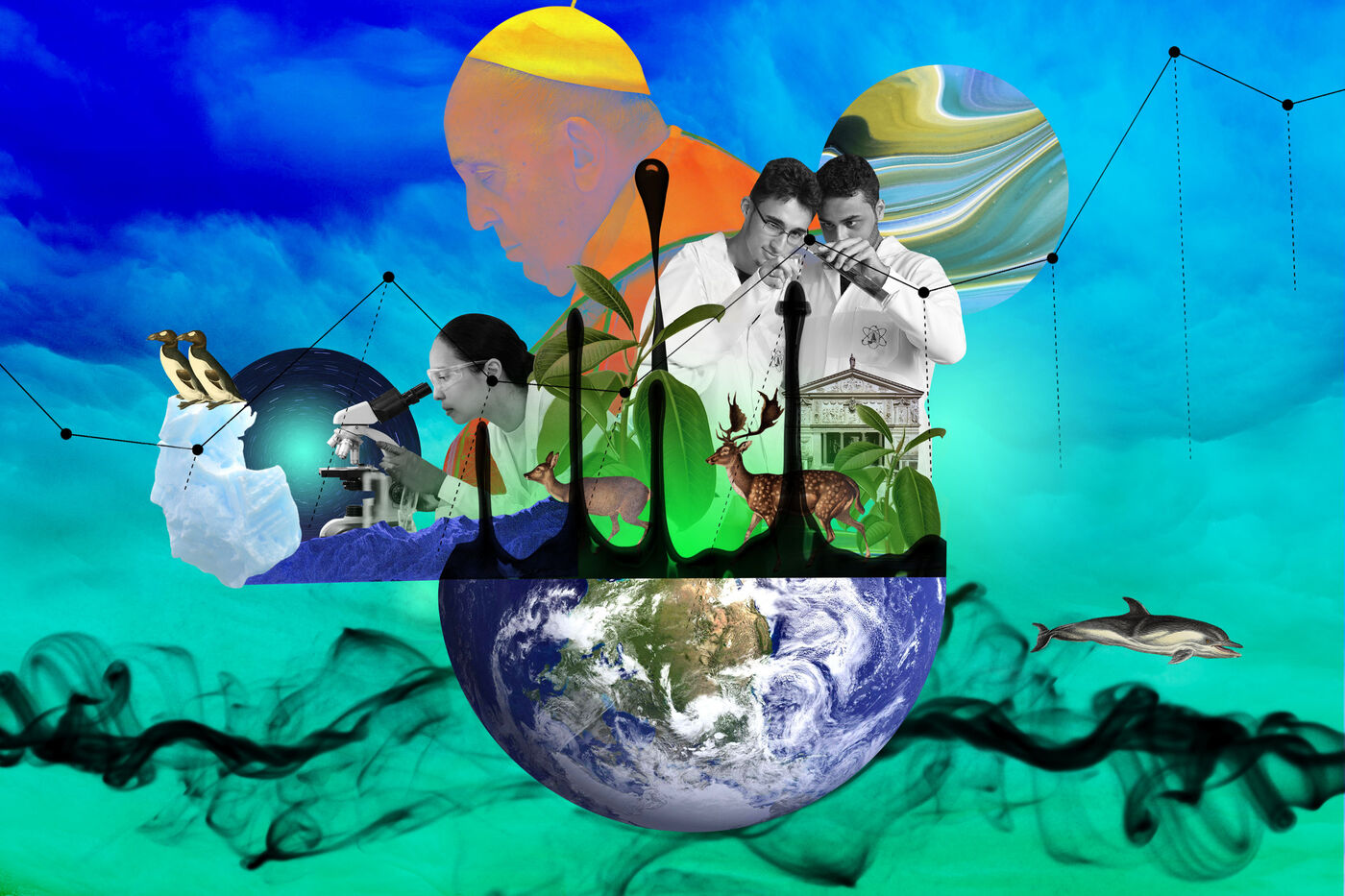 A series of collages on ecology and spirituality: solidarity, justice, the arts, agriculture, parenthood, inter-eligious dialogue on ecological issues.