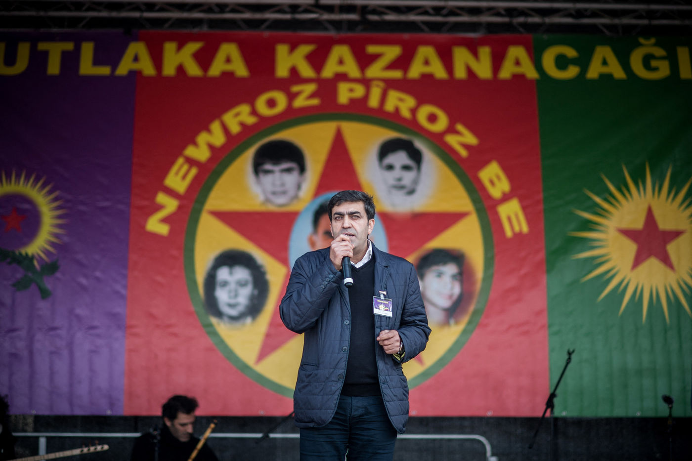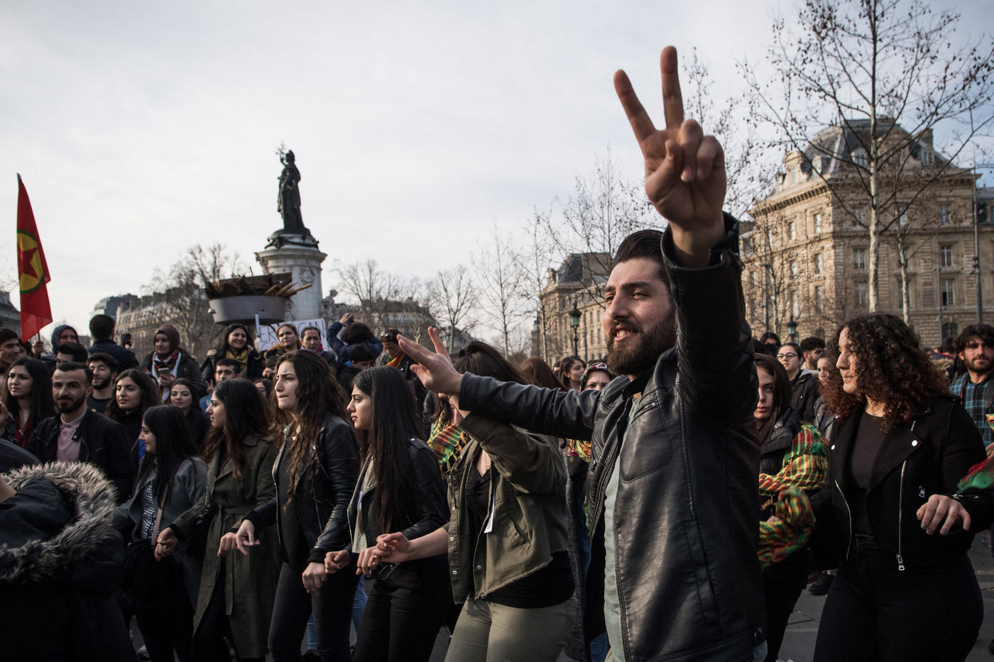 La communauté kurde fête Newroz, le nouvel an kurde, place de la République a Paris. Plusieurs milliers de personnes se sont reunies pour assister à des discours politique, notamment sur la cause kurde du Rojava mais également à des concerts - Paris, 24 mars 2018