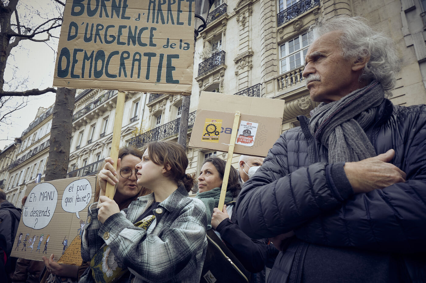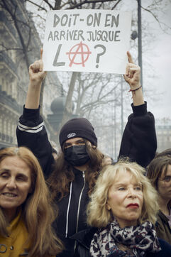 Neuvième journée de mobilisation à l'appel de l'intersyndicale contre la réforme des retraites, une semaine après le recours à l'article 49.3 de la Constitution par le gouvernement et le lendemain du discours du Président Emmanuel Macron, plusieurs miliers de manifestant dans les cortèges parisiens.