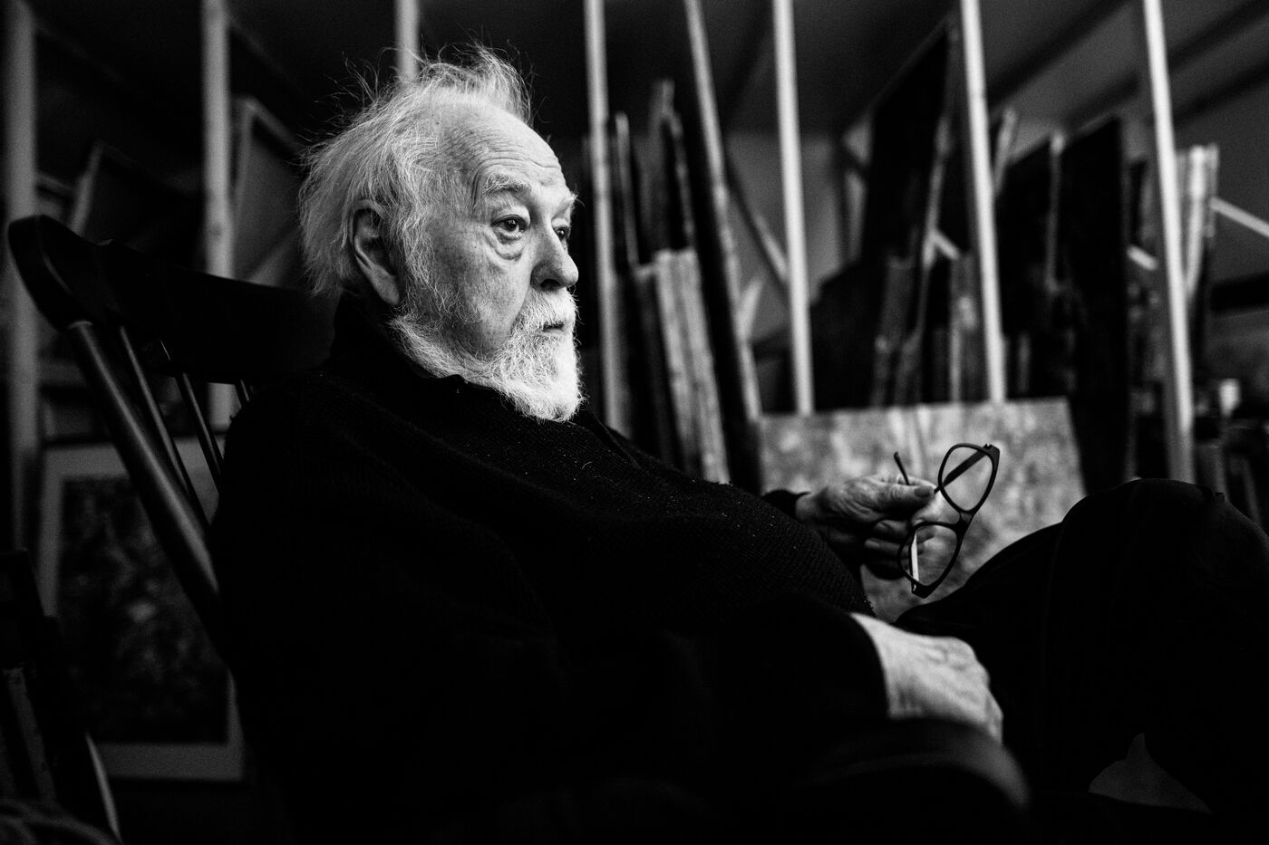 Ce reportage, en alternance de couleur (pour le présent) et de noir et blanc (pour le passé et l’atemporel), propose une plongée dans son univers : portraits intimes, détails d’atelier, fragments d’œuvres, collages et archives. Il ne voulait plus tout raconter. Plus revenir sur la guerre, le père, les années 60, la lutte de son épouse Michèle— sa « très attachée de presse » — contre la peine de mort, les concerts avec Georgie Viennet, Ferré, Ferrat... Tout cela faisait partie de leur histoire.