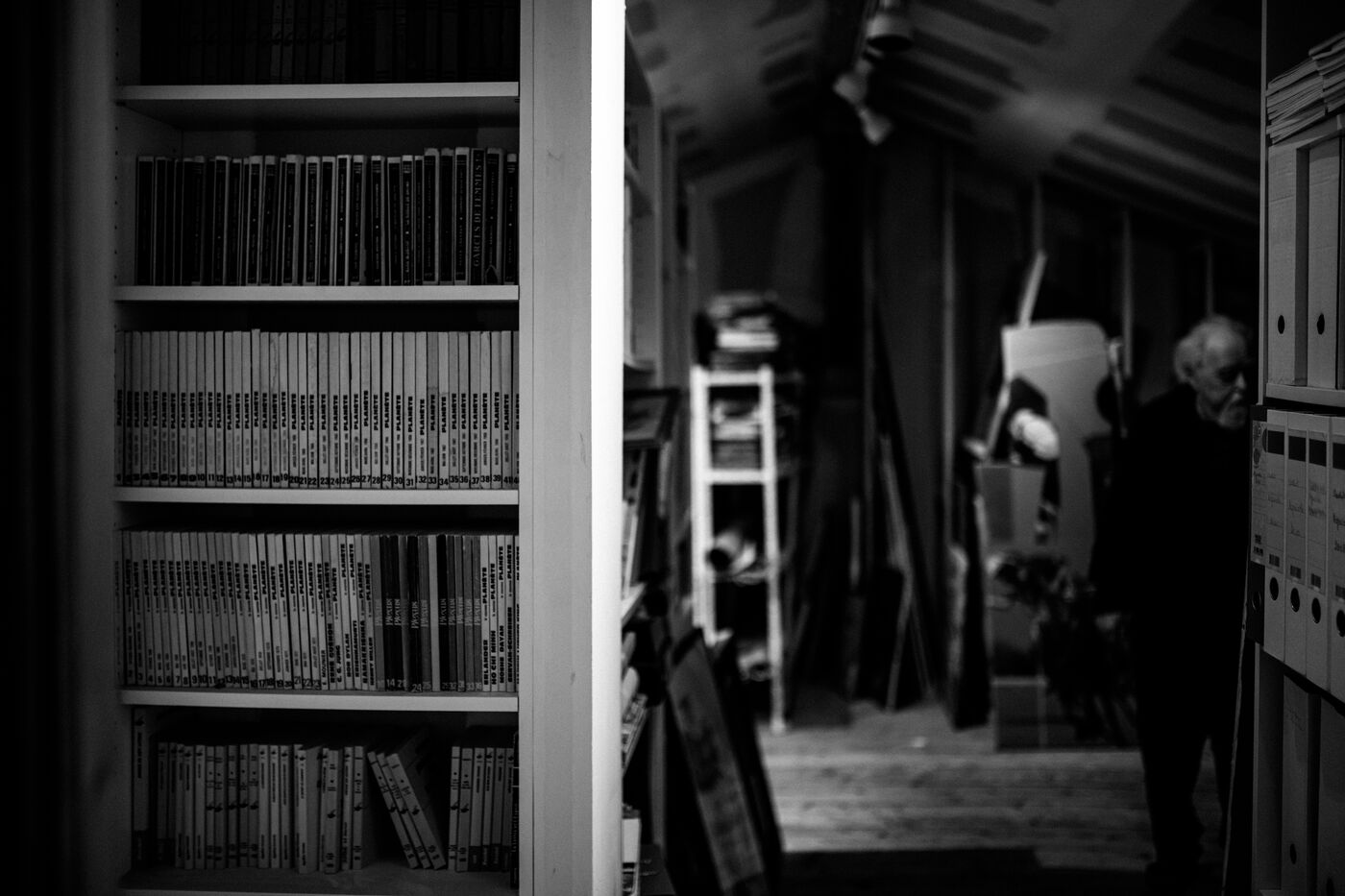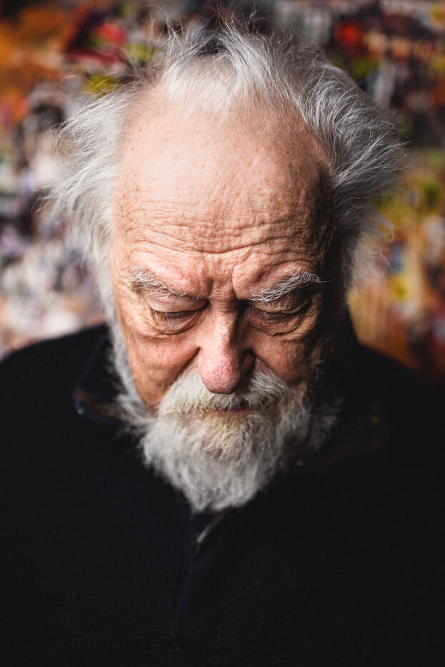 This photo essay, alternating between color (for the present) and black and white (for the past and the timeless), offers an intimate immersion into his universe: portraits, studio details, fragments of artworks, collages, and archives. He no longer wished to recount everything — the war, his father, the sixties, or the fight led by his wife, still his “very dedicated press officer,” against the death penalty. The concerts with Georgie Viennet, Ferré, Ferrat... All of it belonged to their shared past.