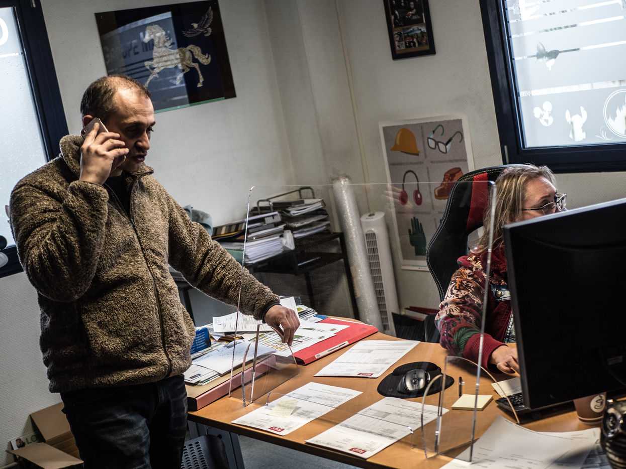 Spécialisée dans la conception de plaques funéraires en plexiglas, l'entreprise Mazal basée à Wormhout a converti son outil de travail pour fabriquer des pare-postillons. A cause de l'épidémie de Covid 19, ceux-ci sont devenus très demandés et équipent de nombreux commerces et cabinets de professions médicales partout en France.