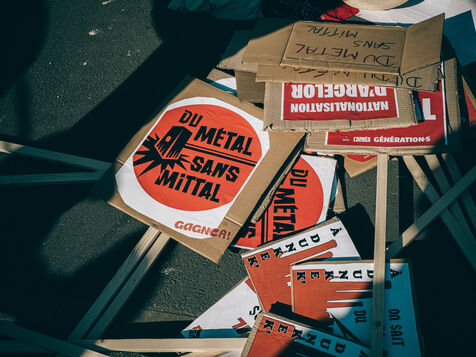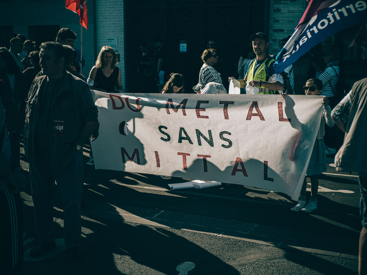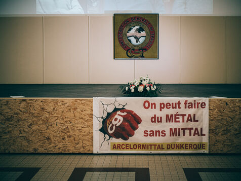 Lors du défilé du premier mai, les ouvriers d'Arcelor dont une partie des postes sont menacés, étaient en tête de cortège à Dunkerque.