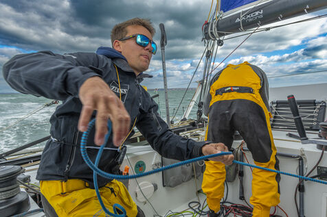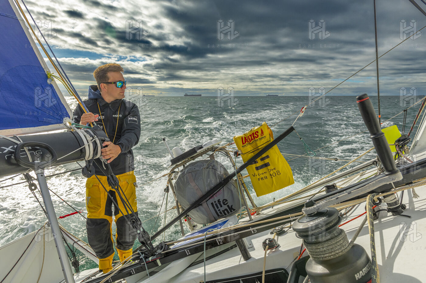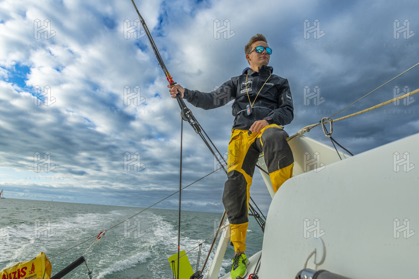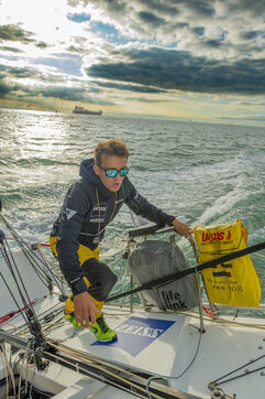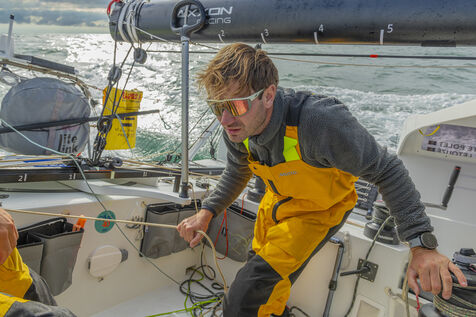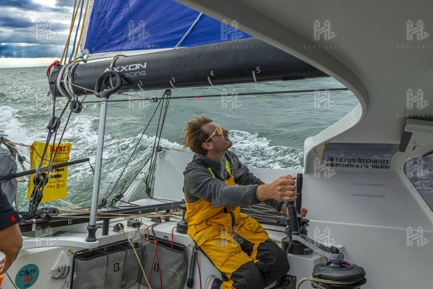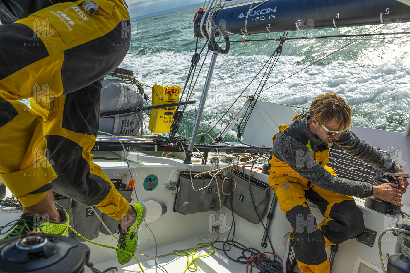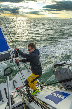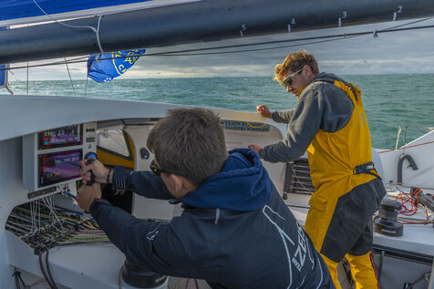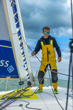 Sea trip with the crew of the Class 40 racing boat, a crew composed of Thimoté Polet, 25, a young skipper from Le Havre and student, and Pierrick Letouzé, a young skipper from Cherbourg, both form a dynamic duo, courageous, valiant, and efficient. This last trip before the start of the Transat café l'or race, 2025 edition. Off the coast of Le Havre, the Zeiss team, named after their main sponsor, is taking advantage of the beautiful sunny weather to test several sails on their boat. Departure from the marina of Le Havre on Wednesday, October 15, 2025, offshore racing and then heading to the transat village basin.