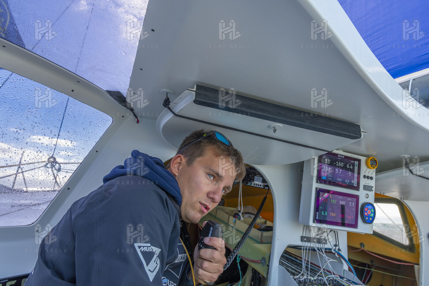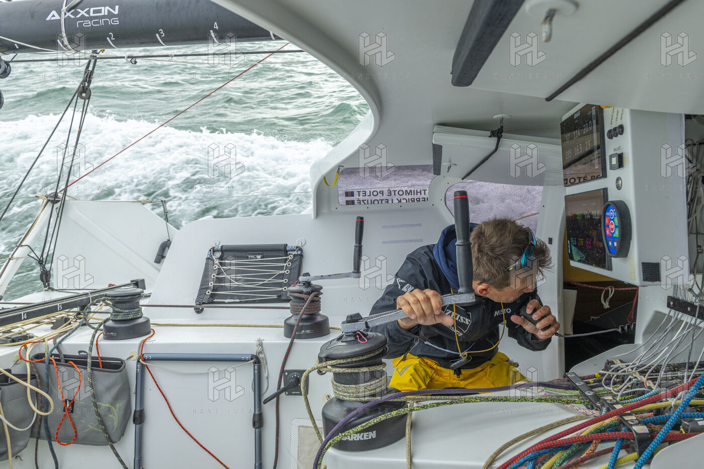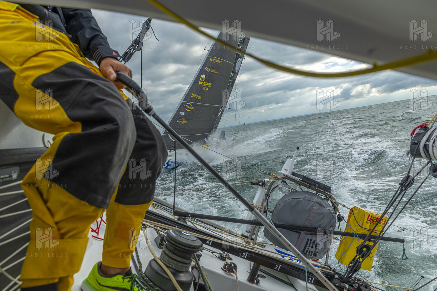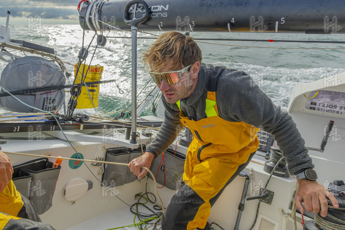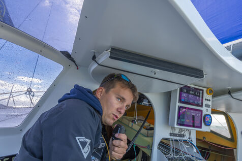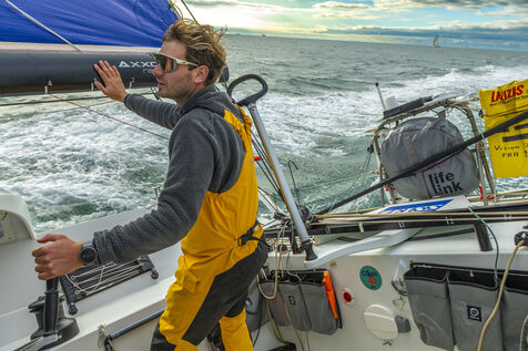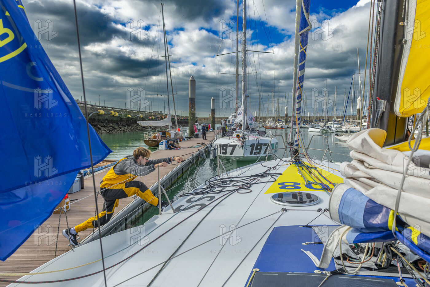 Sea trip with the crew of the Class 40 racing boat, a crew composed of Thimoté Polet, 25, a young skipper from Le Havre and student, and Pierrick Letouzé, a young skipper from Cherbourg, both form a dynamic duo, courageous, valiant, and efficient. This last trip before the start of the Transat café l'or race, 2025 edition. Off the coast of Le Havre, the Zeiss team, named after their main sponsor, is taking advantage of the beautiful sunny weather to test several sails on their boat. Departure from the marina of Le Havre on Wednesday, October 15, 2025, offshore racing and then heading to the transat village basin.