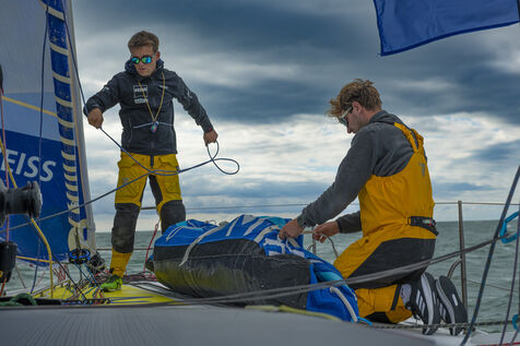 Sortie en mer avec l'équipage du bateau de course Class 40, équipage composé de Thimoté Polet 25 ans, jeune skipper Havrais et étudiant et de Pierrick Letouzé, jeune skipper originaire de Cherbourg, tout deux forment un duo de choc, courageux, vaillants et performants. Cette dernière sortie avant le départ de la course Transat café l'or edition 2025. Au large du Havre, la team Zeiss du nom de leur sponsor principal, profite du beau temps ensoleillé pour essayer plusieurs voiles de leur bateau. Départ du port de plaisance du Havre le mercredi 15 octobre 2025, course au large et ensuite direction le bassin du village de la transat.