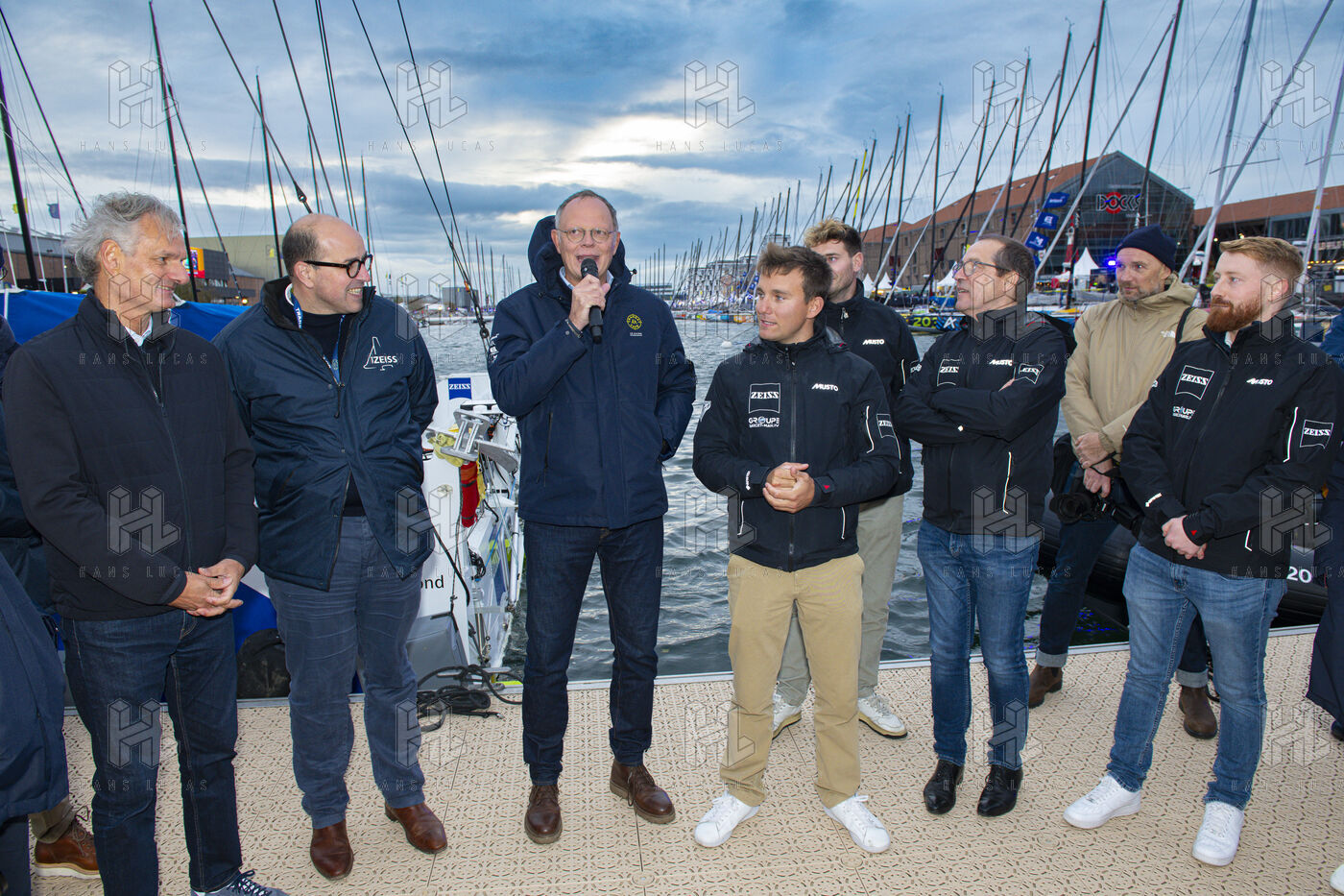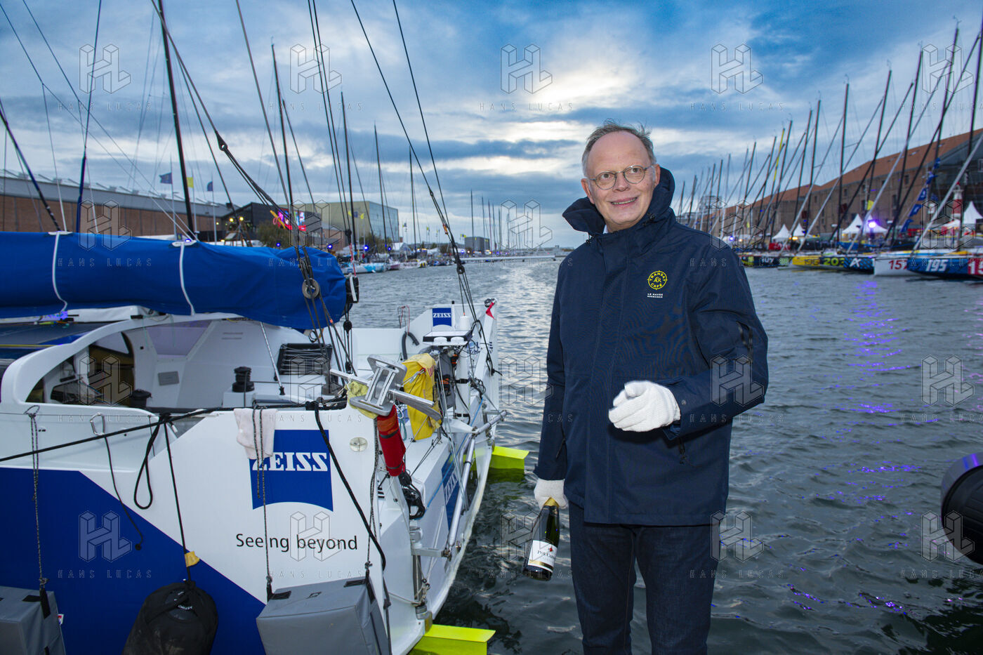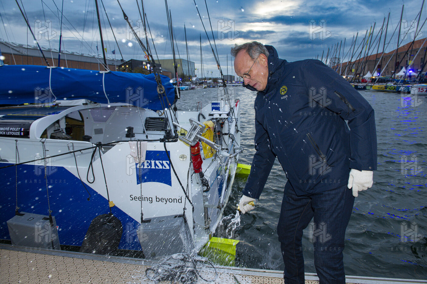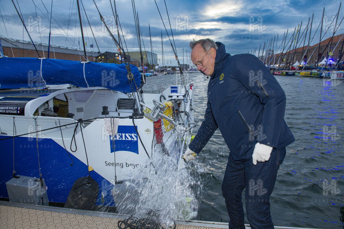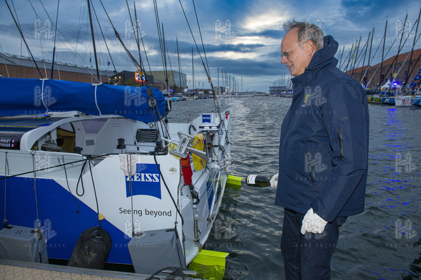 The Class 40 boat was christened in Le Havre in the presence of Mayor Edouard Philippe, Minister for the Sea and Fisheries Catherine Chabaud, Agnès Firmin Le Bodo, Jean Baptiste Gastinne, and sponsors Zeiss Optics, in the Paul Vatine basin, on the last day before the start, in the race village Café L'Or Normandie. The two skippers Thimoté Polet and Pierrick Letouzé were obviously delighted with this celebration, as Edouard Philippe is the sponsor of this magnificent boat.