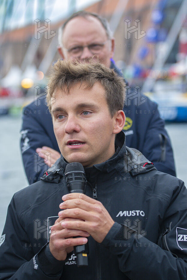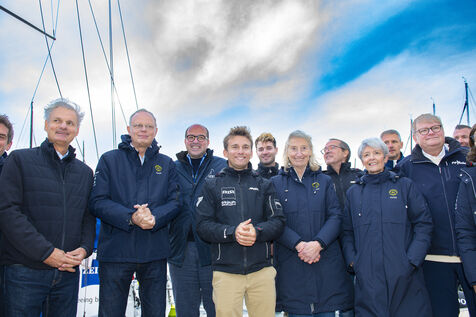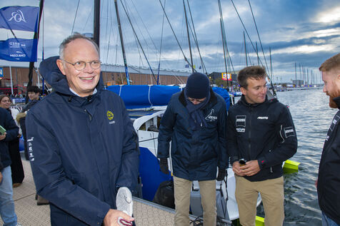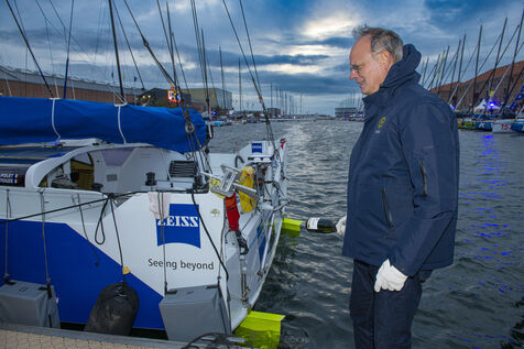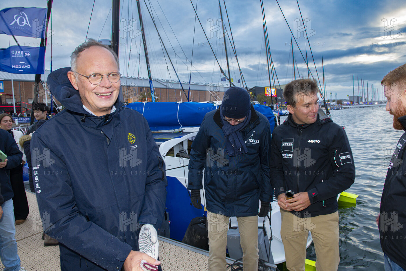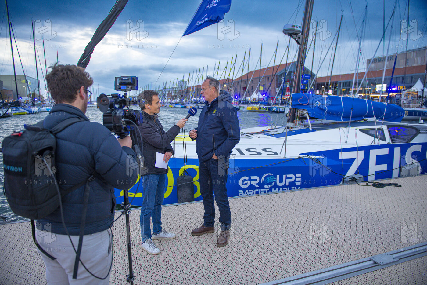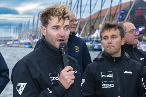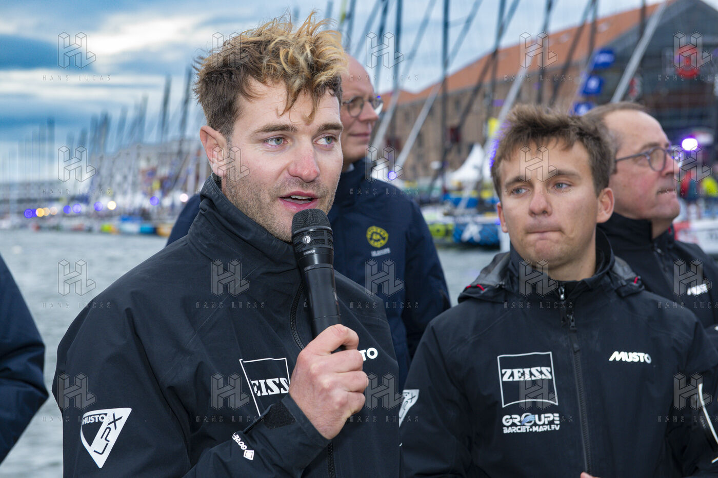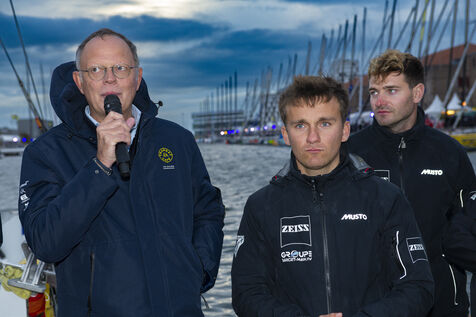 The Class 40 boat was christened in Le Havre in the presence of Mayor Edouard Philippe, Minister for the Sea and Fisheries Catherine Chabaud, Agnès Firmin Le Bodo, Jean Baptiste Gastinne, and sponsors Zeiss Optics, in the Paul Vatine basin, on the last day before the start, in the race village Café L'Or Normandie. The two skippers Thimoté Polet and Pierrick Letouzé were obviously delighted with this celebration, as Edouard Philippe is the sponsor of this magnificent boat.