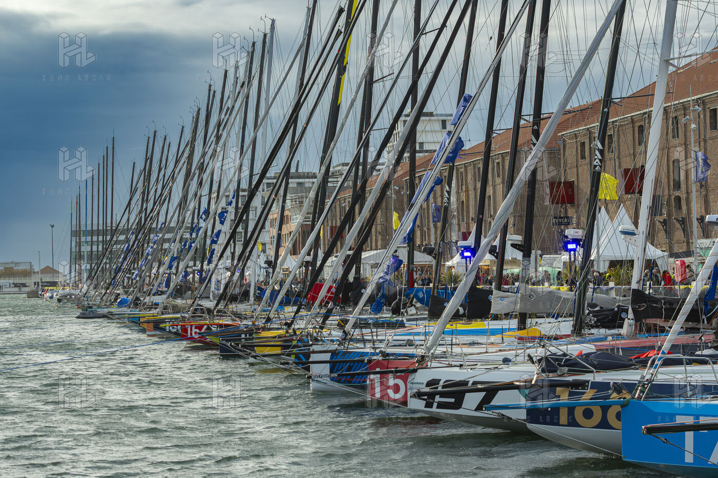 Baptême du bateau Class 40 au Havre en présence du maire Edouard Philippe, de la ministre chargée de la mer et de la pêche Catherine Chabaud, d'Agnès Firmin Le Bodo,Jean Baptiste Gastinne, des sponsors Zeiss optique, dans le bassin Paul Vatine, la dernière journée avant le départ, dans le village de la course Café L'Or Normandie. Les deux skippers Thimoté Polet et Pierrick Letouzé sont évidemment ravis de cette fête, Edouard Philippe étant le parrain de ce magnifique bateau.