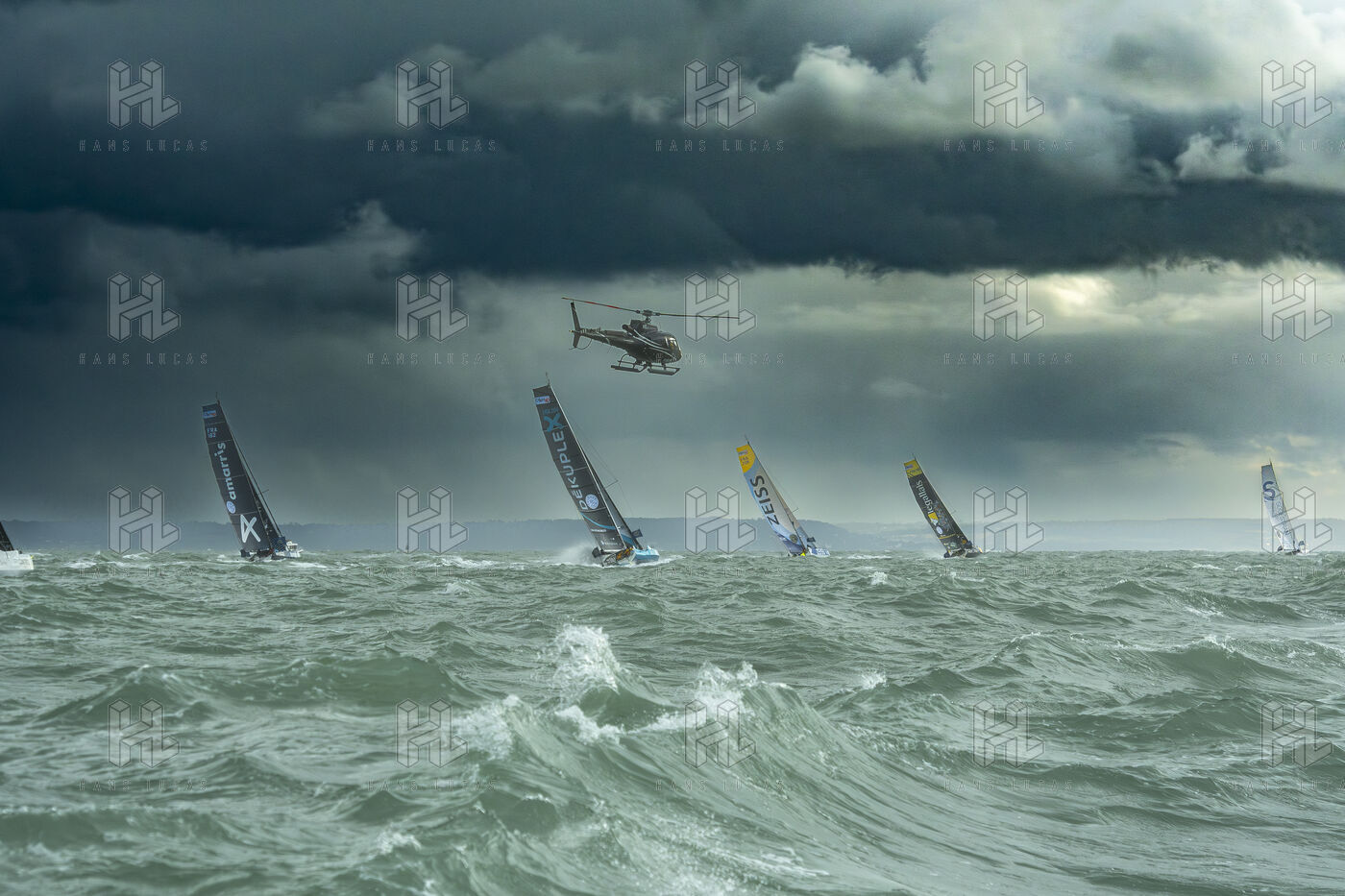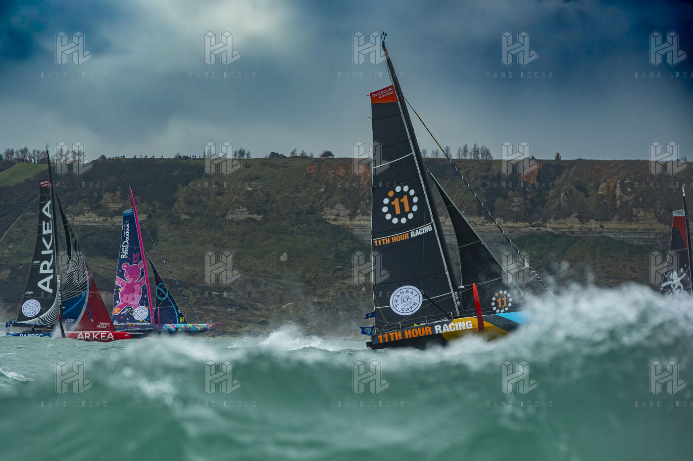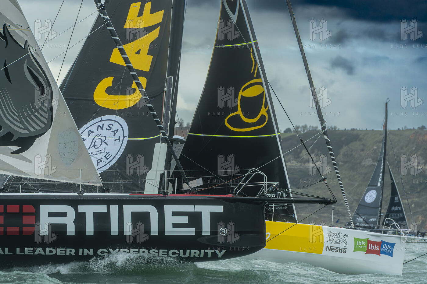 Départ de la transat café l'or Normandie 2025, les Ultim, les Imoca, les Class 40, s'élancent ce dimanche dans cette course incroyable qui se dirige en Martinique. Les conditions météo sont fortes, vents, vagues, mais ces héros que sont les skippeurs n'ont peur de rien. Les Ocean Fifty sont partis la veille en raison des conditions météos particulièrement défavorables pour cette catégorie.