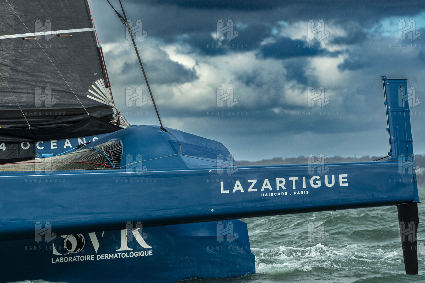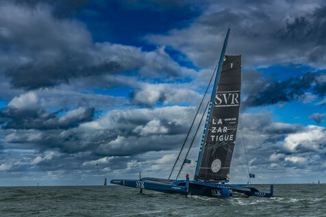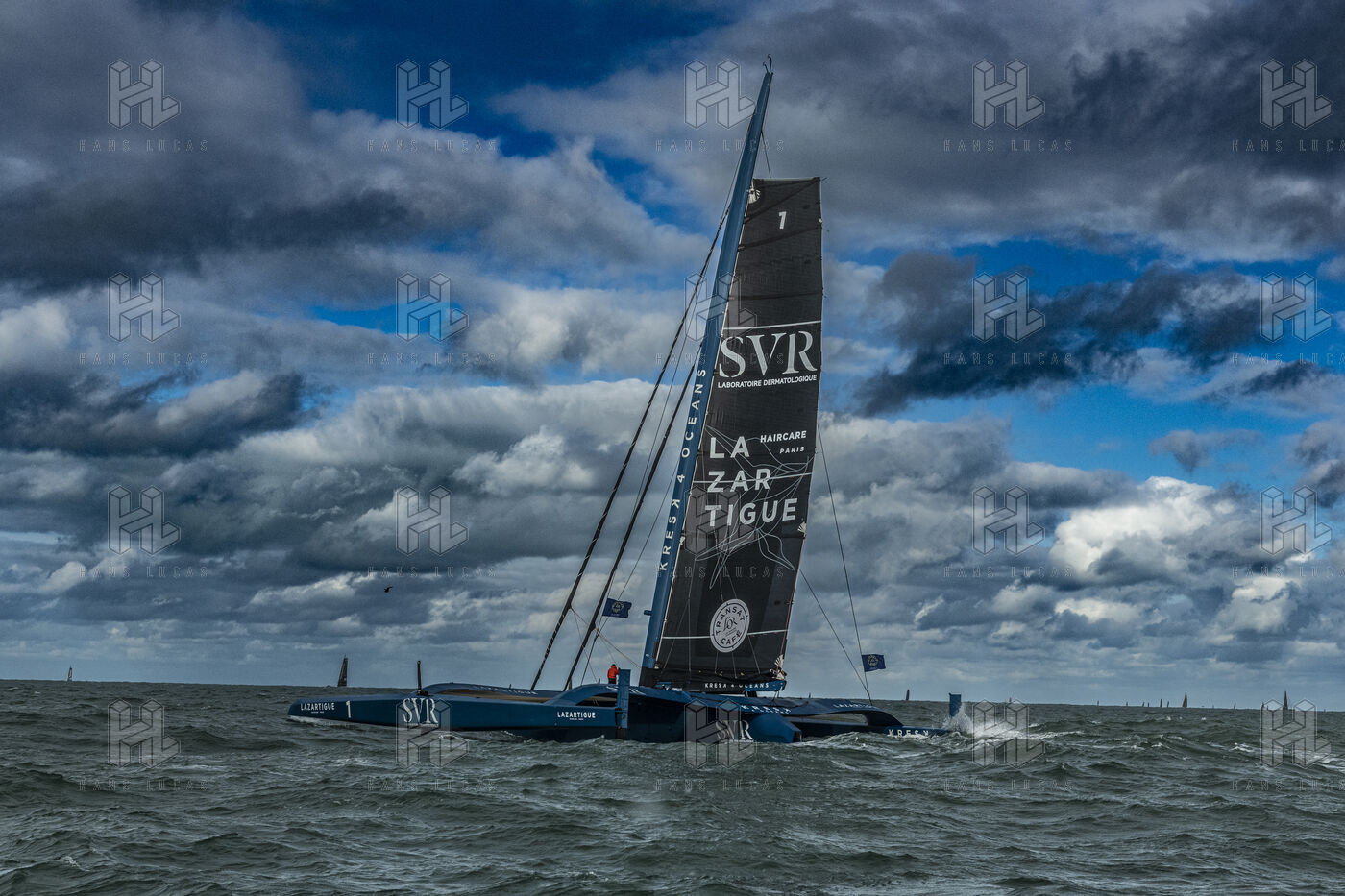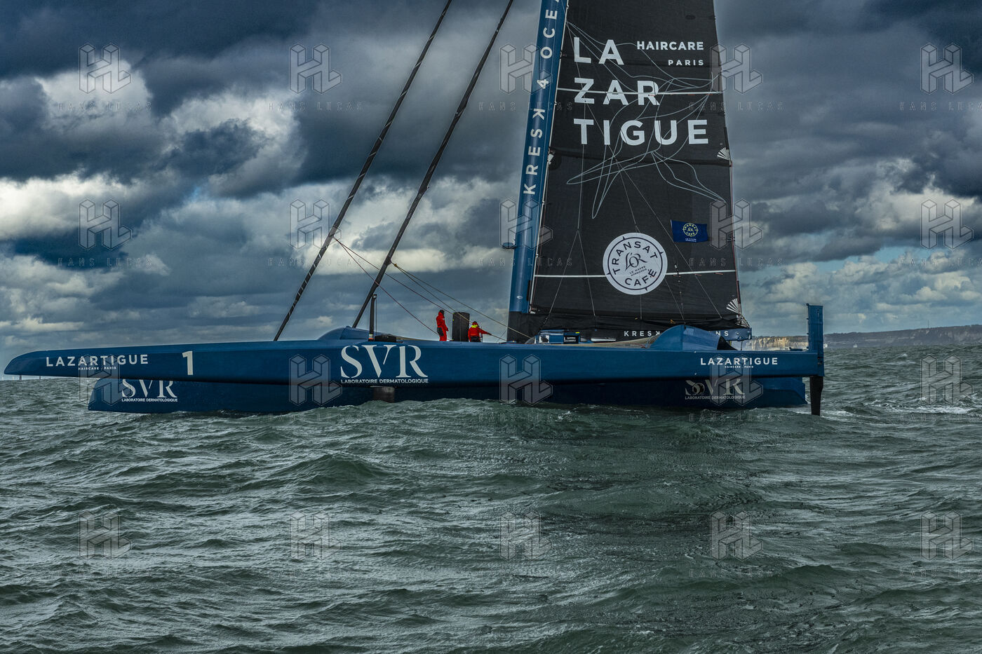 SVR Lazartigue, winner of the Transat Café L'Or; Tom Laperche and Franck Cammas, winners of the Transat Café L'Or Normandy 2025. Images of the departure from Le Havre on October 26th.