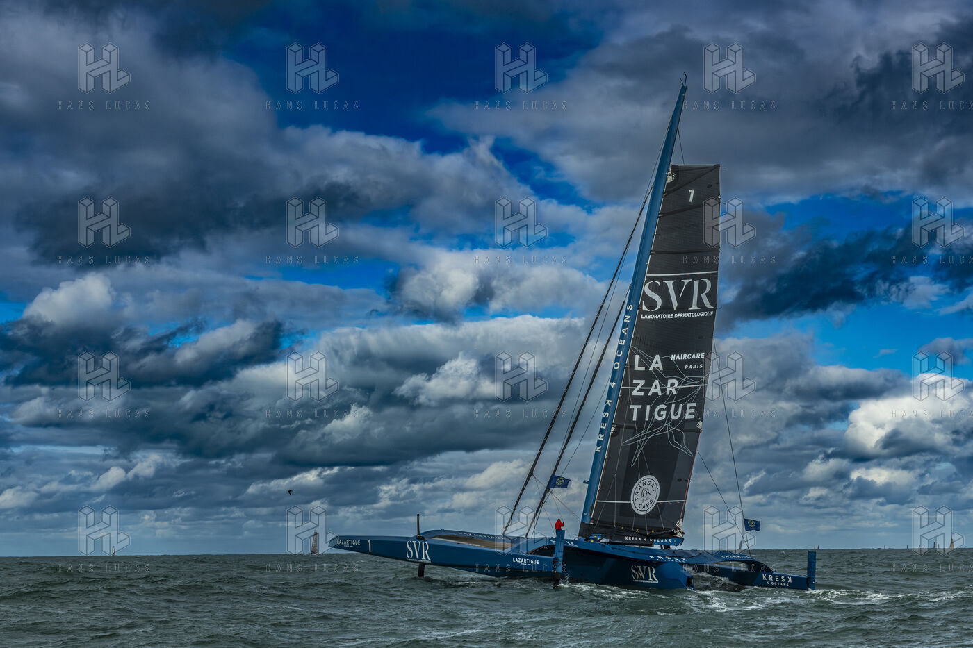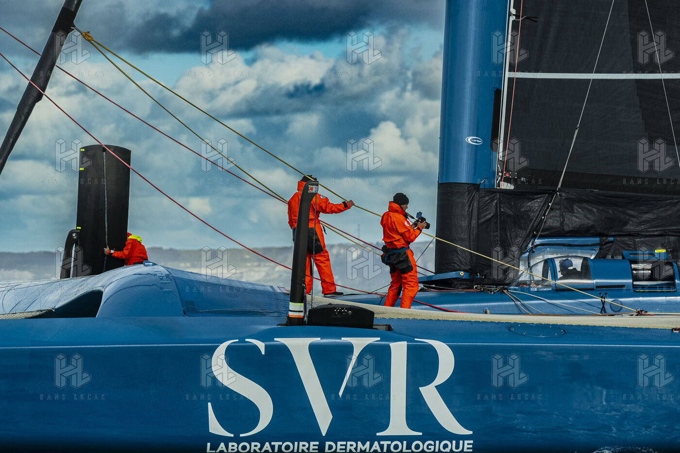 SVR Lazartigue Vainqueur Transat Café L'or, Tom Laperche et Franck Cammas vainqueurs de la Transat Café L'Or Normandie 2025, images du départ du Havre le 26 octobre dernier.