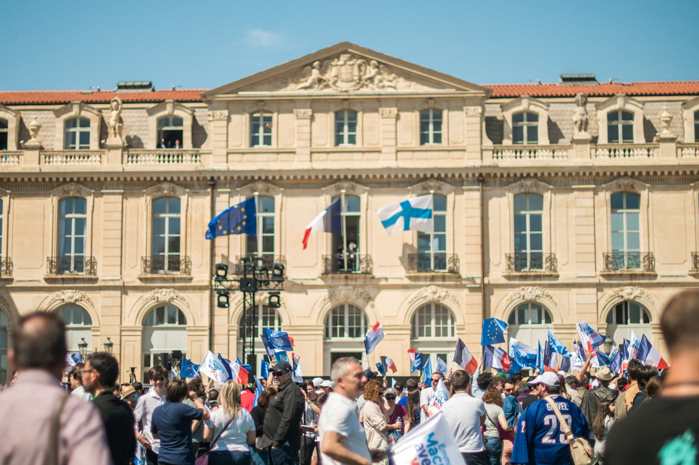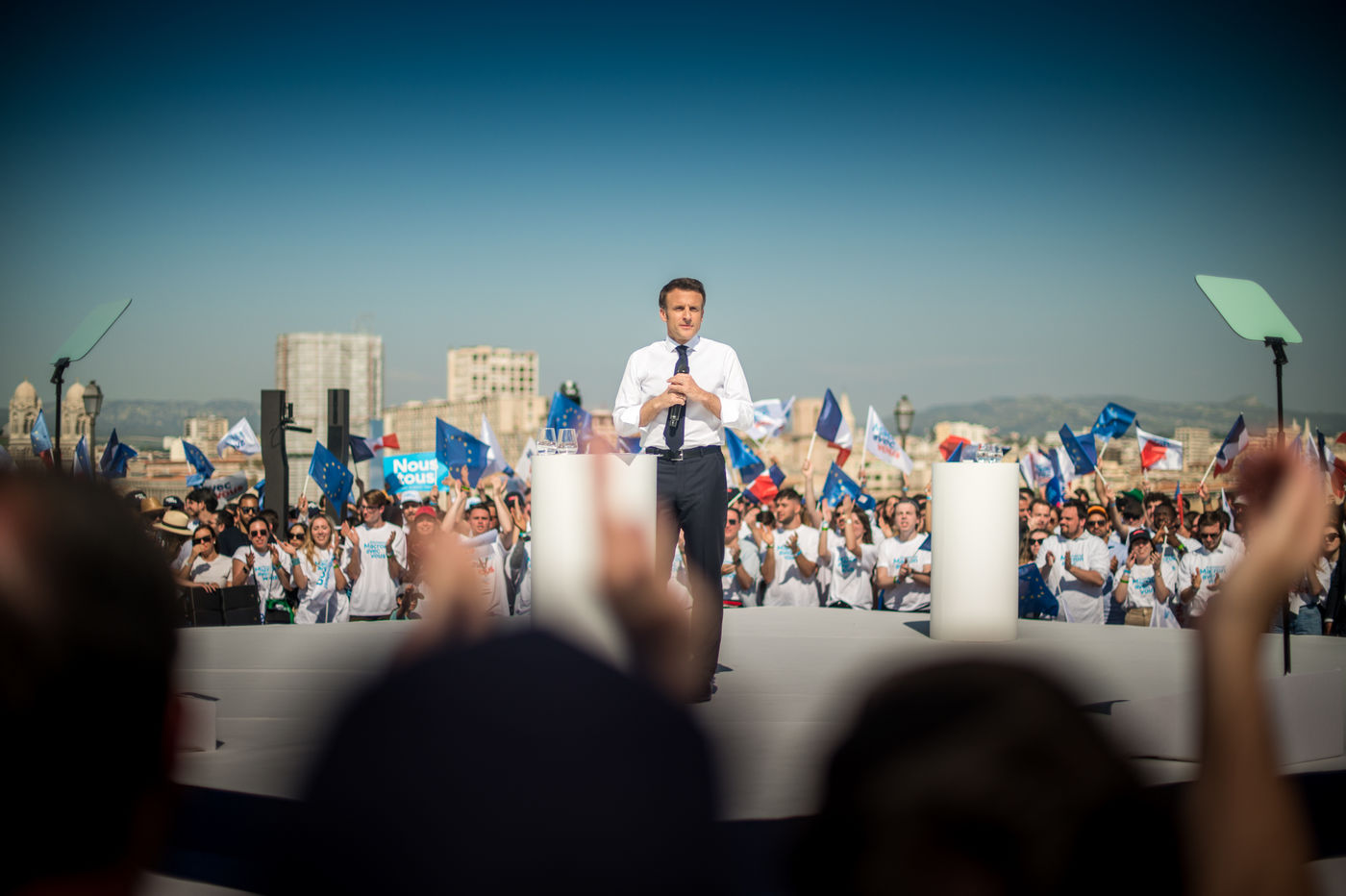 Emmanuel Macron, the presidential candidate, held his second meeting between the two rounds, which gathered more than --- people at the Pharo in Marseille.