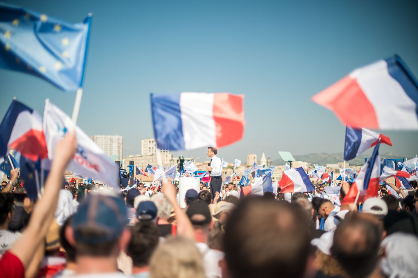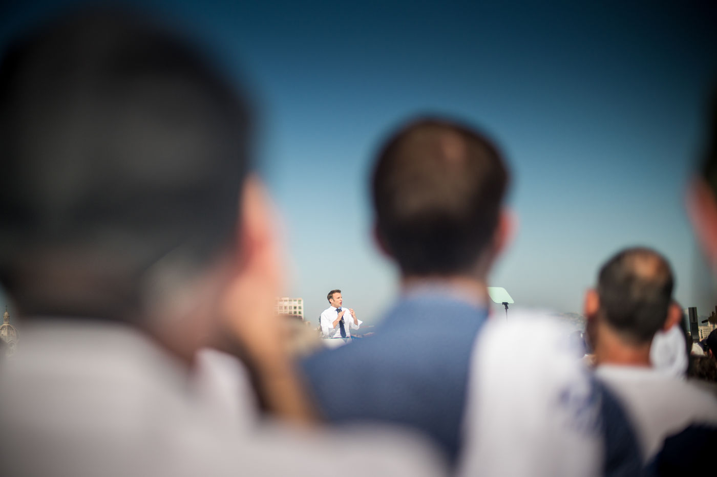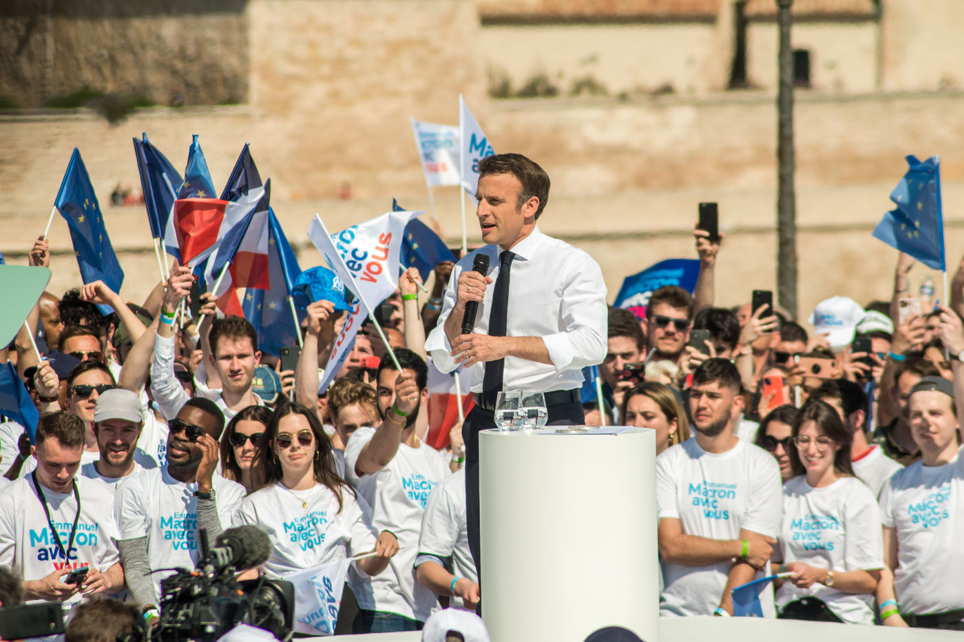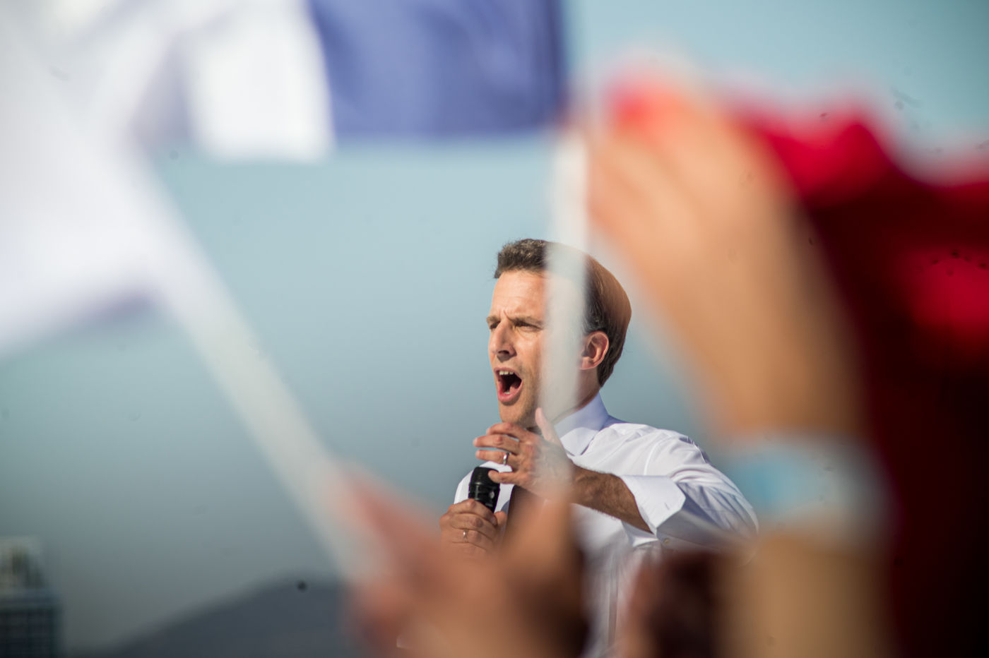 Emmanuel Macron, le candidat président aux présidentielles tenait son second meeting d'entre deux tours qui a réunis plus de --- personnes au Pharo à Marseille.