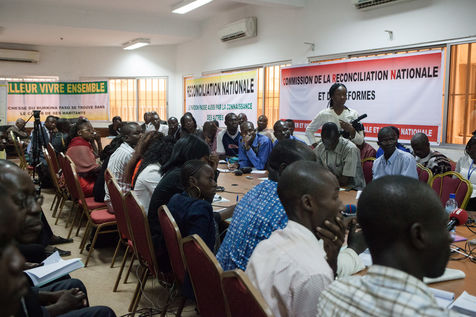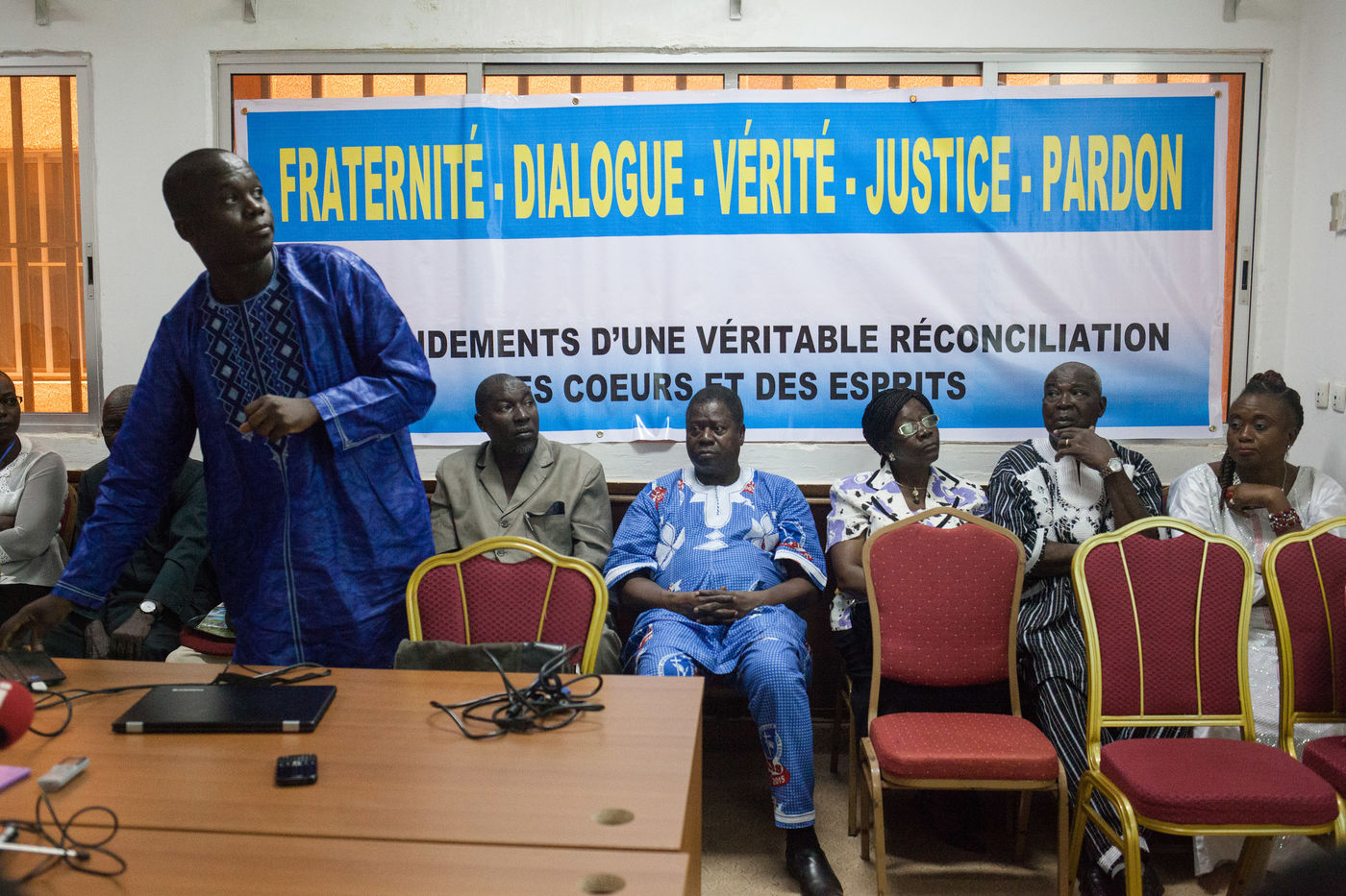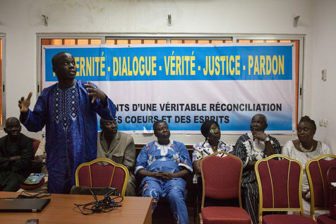 14 octobre 2015, Ouagadougou - Présentation du rapport de la Commision de réconciliation nationale et des réformes. Celui-ci contient les directives et recommandations de reformes à réaliser pour assainir la vie politique, l'économie et les institutions du Burkina Faso. Le rapporteur général de la commission, le Dr Ra-Sablg Oue?draogo, souhaiterait que ce document devienne un jour une référence pouvant servir de garde-fou dans son pays, comme le fût le programme du CNR en France en matière de reformes.