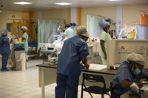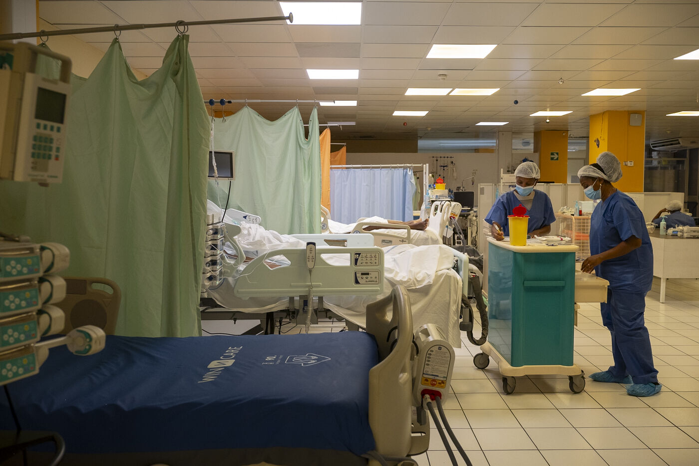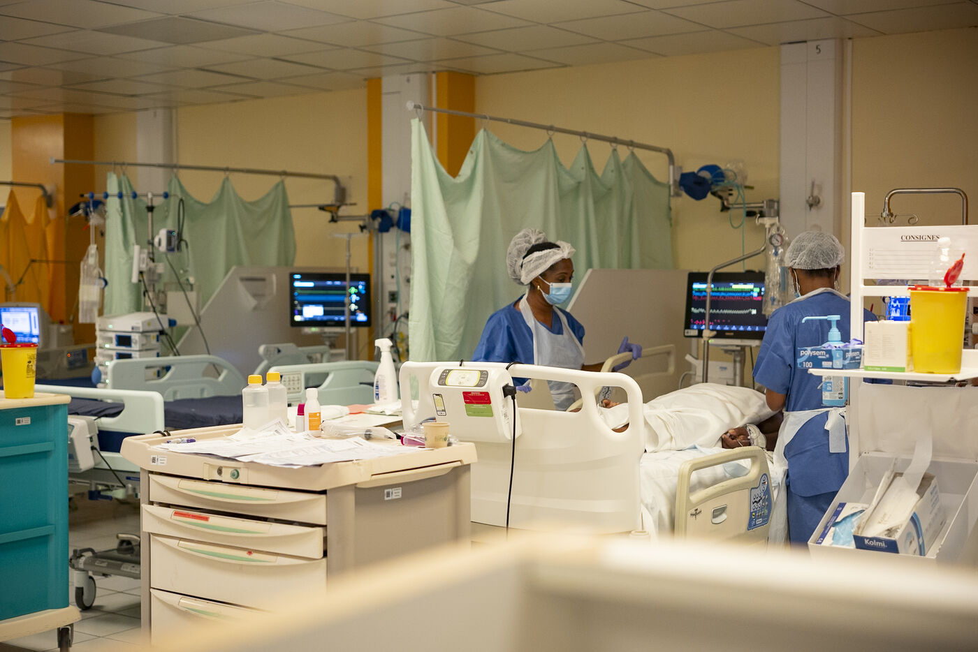 For several weeks now, Guadeloupe has been in the grip of an unusually severe flu pandemic. To deal with this exceptional health situation, a new intensive care unit has been set up at the Guadeloupe University Hospital Centre (CHUG) to cope with the high number of admissions. Report from inside this temporary unit, designed to treat patients with severe influenza, set up in the hospital's former cafeteria.