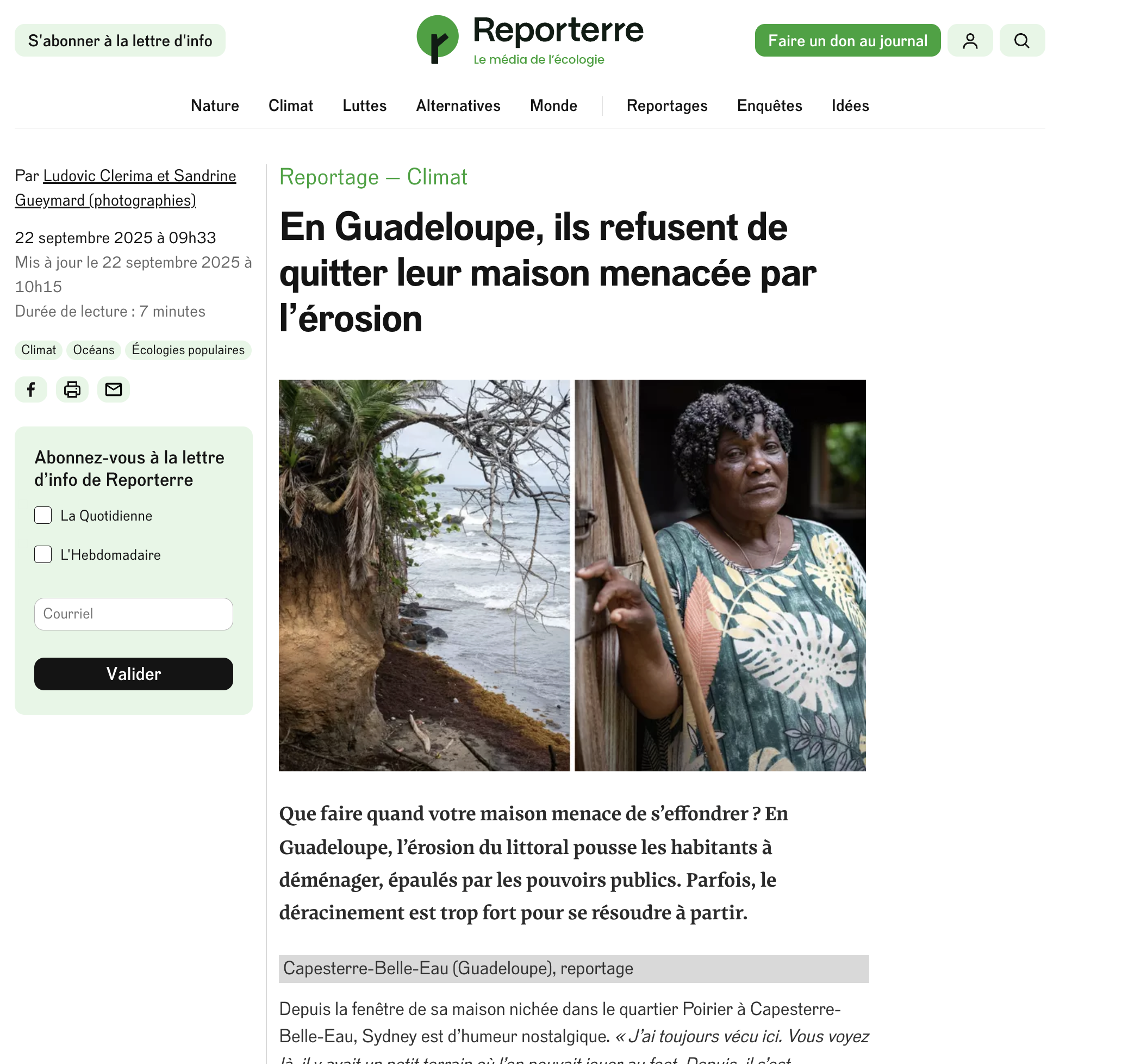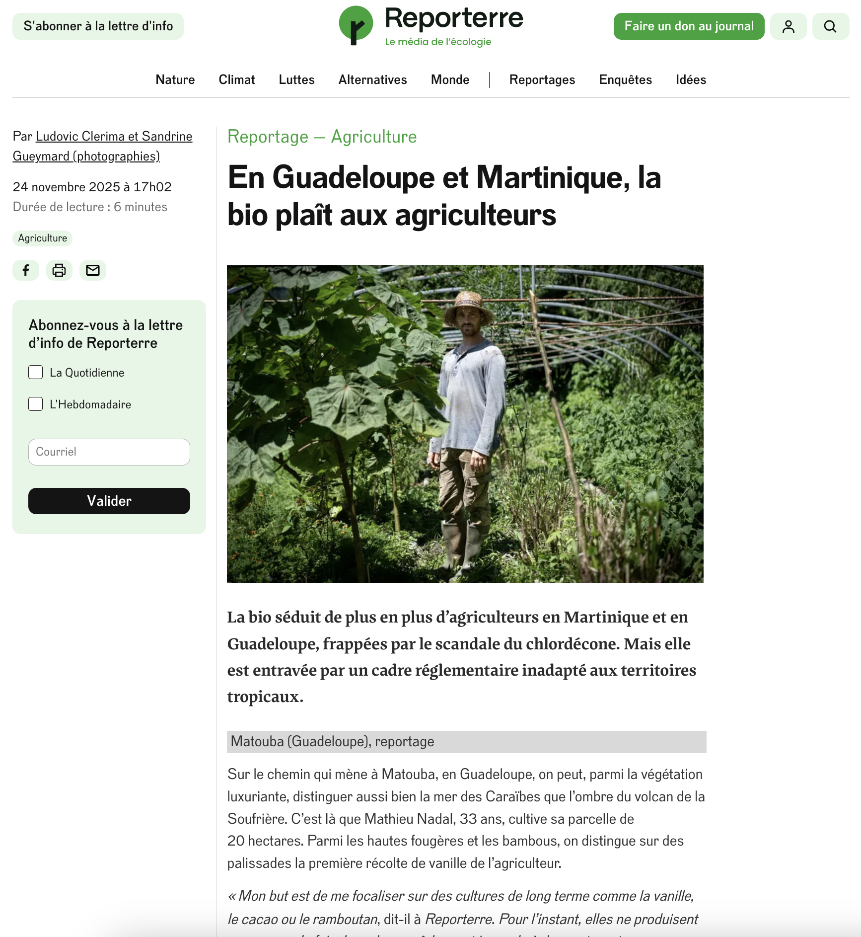 Sandrine Gueymard Publications Séries Culture — Environnement — Politique — Société — Spiritualité — Sport Sélection de séries L'Argus de l'assurance- 05/12/25 L'Argus de l'assurance- 05/12/25 L'Argus de l'assurance- 05/12/25 L'Argus de l'assurance- 05/12/25 Reporterre-24/11/25 Le Monde - 30/10/25 Sciences et avenir - 22/10/25 Reporterre - 22/09/2025 Le Figaro - 02/07/25 Le Figaro [web]- 01/07/25 Libération [web]- 25/06/25 Libération- 25/06/25 Libération [web]- 24/06/25 France-Antilles Guadeloupe - 20/06/25 France info [web]- 26/05/25 Le Courrier de Guadeloupe [web]- 19/05/25 Libération [web]- 19/03/25 Libération - 18/03/25 Libération [web]- 17/03/25 Libération [web]- 17/03/25