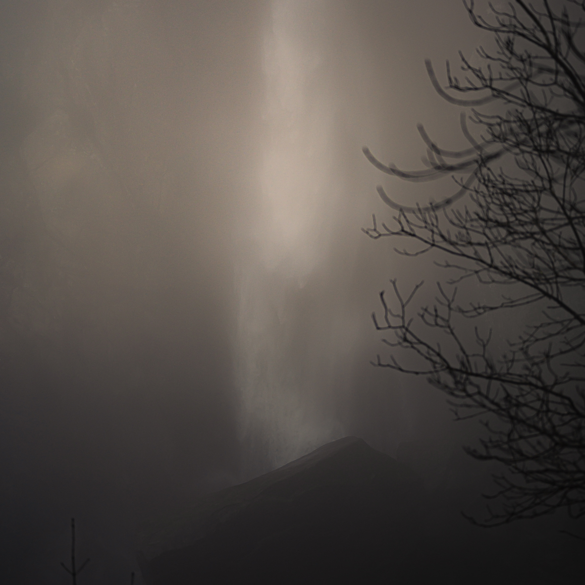 Mixing square-format photographs of a wadded-up nature with delicate haikus, (the author) evokes the experience of feeling lost after wandering through a misty forest.
