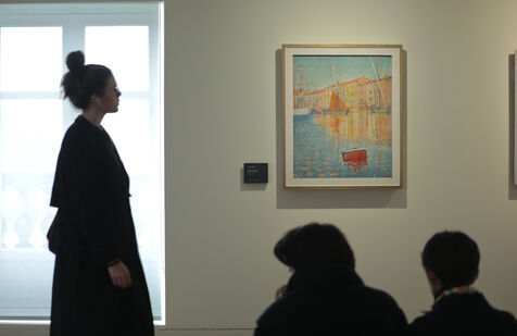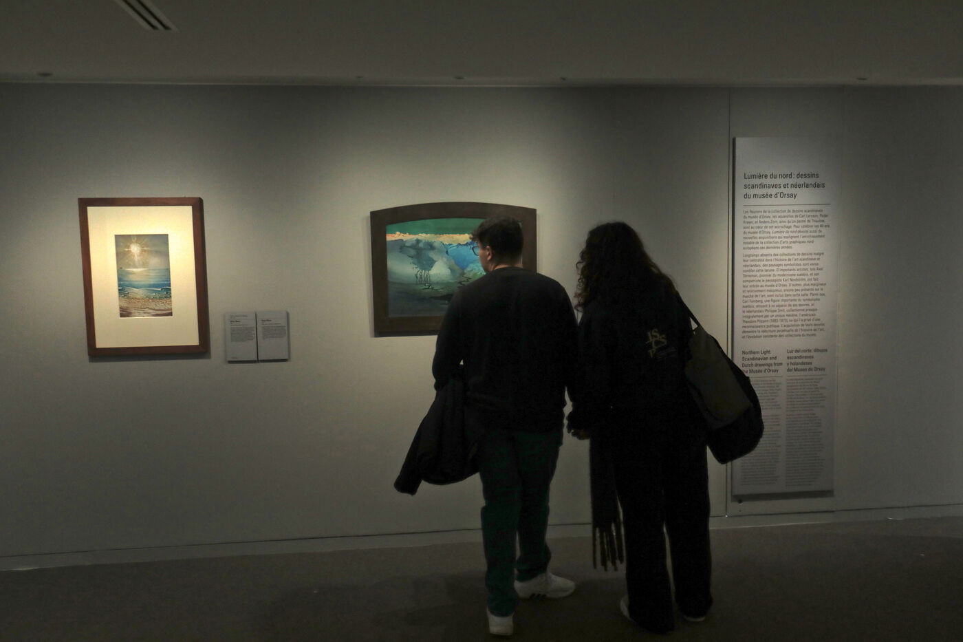 PARIS, February 10, 2026 - Visitors explore the "Northern Lights" (Lumière du nord) exhibition at the Musée d'Orsay in Paris, featuring a selection of Neo-Impressionist, Scandinavian, and Dutch masterpieces. The collection highlights pointillist works by artists such as Paul Signac, Henri-Edmond Cross, and Théo van Rysselberghe, alongside Swedish landscapes by Carl Johan Forsberg.
