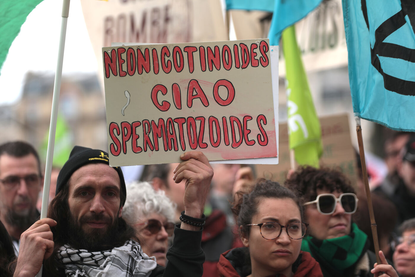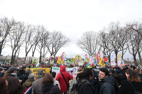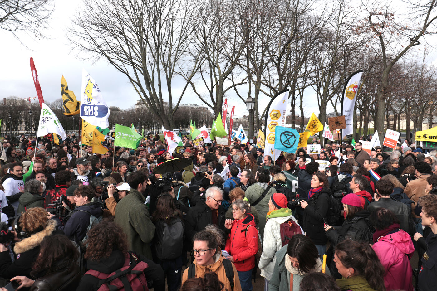 PARIS, February 11, 2026 - Hundreds gather at the Esplanade des Invalides against the laws of pesticides and Duplomb's agricultural Law. The mobilization of many organizations coincided with a National Assembly debate triggered by a record-breaking petition of 2.1 million signatures.