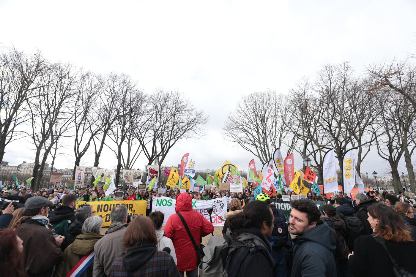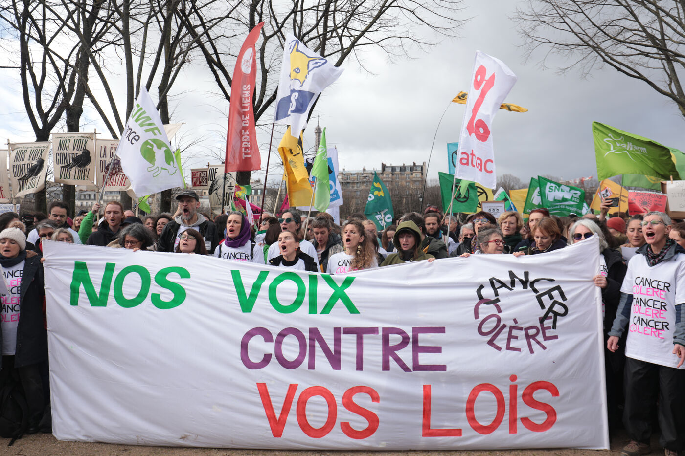 PARIS, 11 février 2026 - Des centaines de personnes se sont rassemblées sur l'Esplanade des Invalides pour protester contre la Loi Duplomb. Cette mobilisation, soutenue par de nombreuses organisations, a coïncidé avec un débat à l'Assemblée nationale déclenché par une pétition citoyenne record ayant recueilli 2,1 millions de signatures.