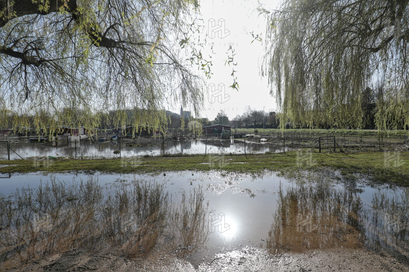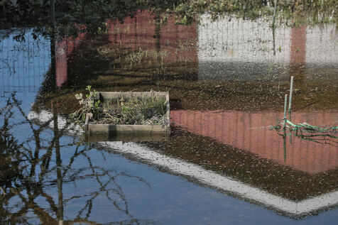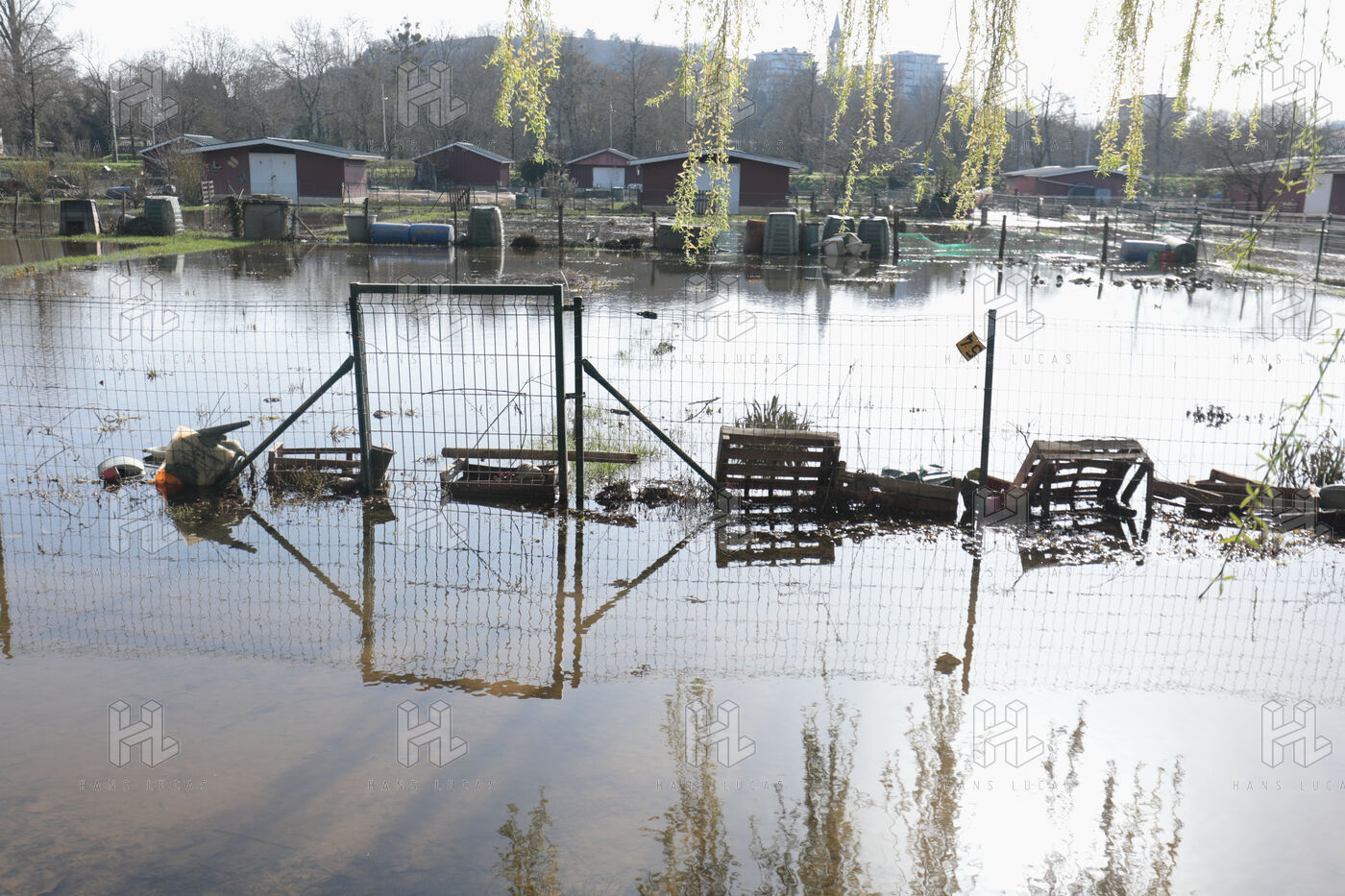 Angoulême, France, 26 February 2026 - After several days of severe flooding following heavy rainfall, the Charente River has begun its slow recession in Angoulême. As the sun returns, the receding waters reveal the impact on local infrastructure and community life. The flooding waters of the Charente have destroyed vegetable plots in local allotment gardens near Fregeneuil park, while still submerging garden sheds and trees.
