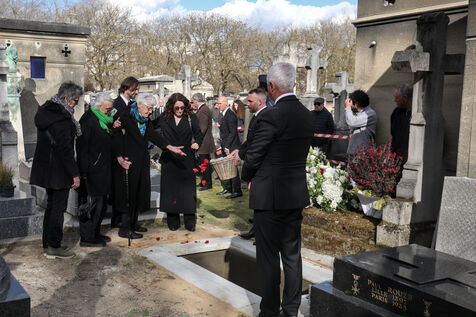 Paris, France, 26 mars 2026 - Lionel Jospin, ancien Premier ministre et pilier du Parti socialiste, a été inhumé au cimetière du Montparnasse à Paris, au terme d'une journée de deuil national. Plus tôt dans la matinée, l’État français a rendu hommage à l’ancien chef du gouvernement lors d’une cérémonie officielle aux Invalides, où le président Emmanuel Macron et l’ancien président François Hollande ont rejoint un large parterre de dignitaires et de figures politiques. L’après-midi, dans une atmosphère plus recueillie, la famille de Lionel Jospin a procédé à une inhumation publique. Entourés de fidèles du parti, de sympathisants et de nombreux citoyens, ils ont adressé un dernier adieu, recouvrant la tombe de roses rouges, emblème du mouvement que Lionel Jospin a autrefois dirigé.