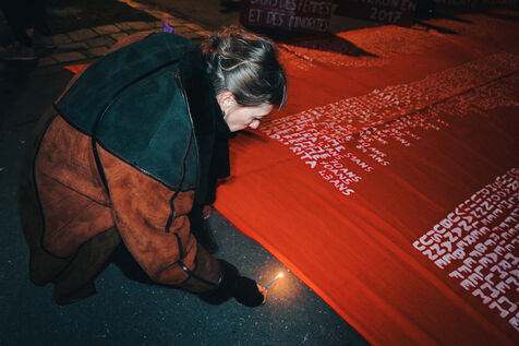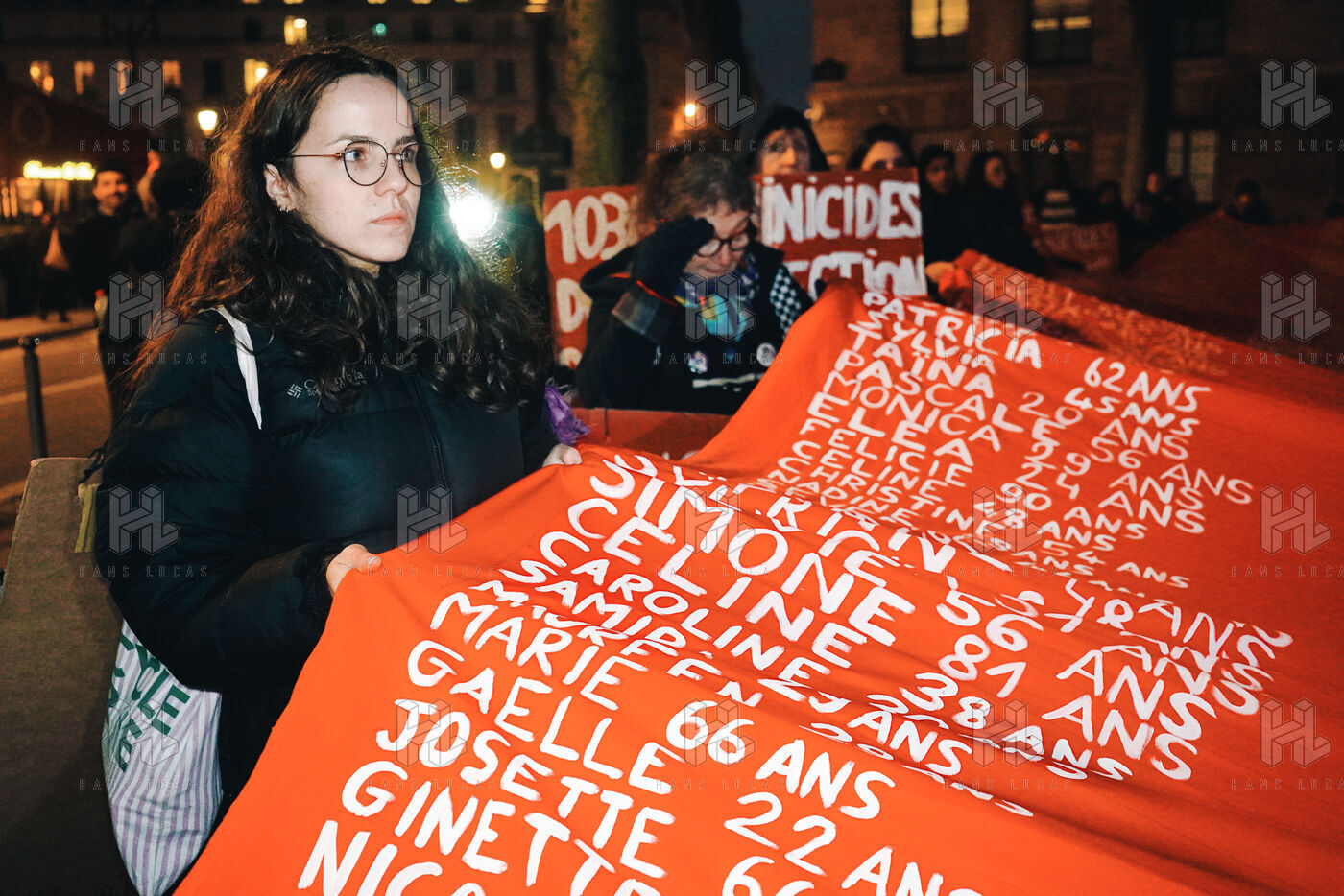 À l’appel du collectif Nous Toutes, des militantes ont participé à un happening contre les fémincides à sur la place du Président Édouard-Herriot, près de l’Assemblée nationale à Paris. L'événement a été marqué par le déploiement d’une banderole de 17 mètres affichant les noms et âges des 1 036 victimes recensées sous les quinquennats d’Emmanuel Macron, une chorale, des discours et par des discours et par la présence de l’actrice Judith Godrèche venue manifester son soutien.