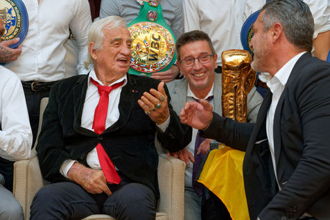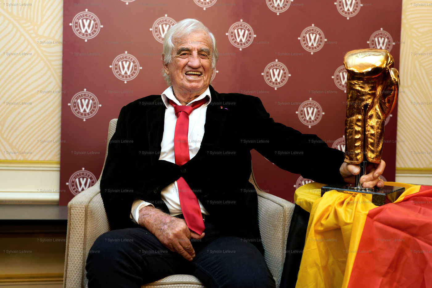 Jean-Paul Belmondo surprise guest of the ' Golden Gloves ' in Brussels - Former boxer himself, Jean-Paul Belmondo, at the age of 86, made the trip to Belgium to receive a Golden Glove of Honor in the presence of many champions of yesterday and today. This award, awarded for his contribution to the notoriety and image of noble art in the cinema, was greeted by a long ovation that touched the artist. Brussels, Belgium, on October 18, 2019.