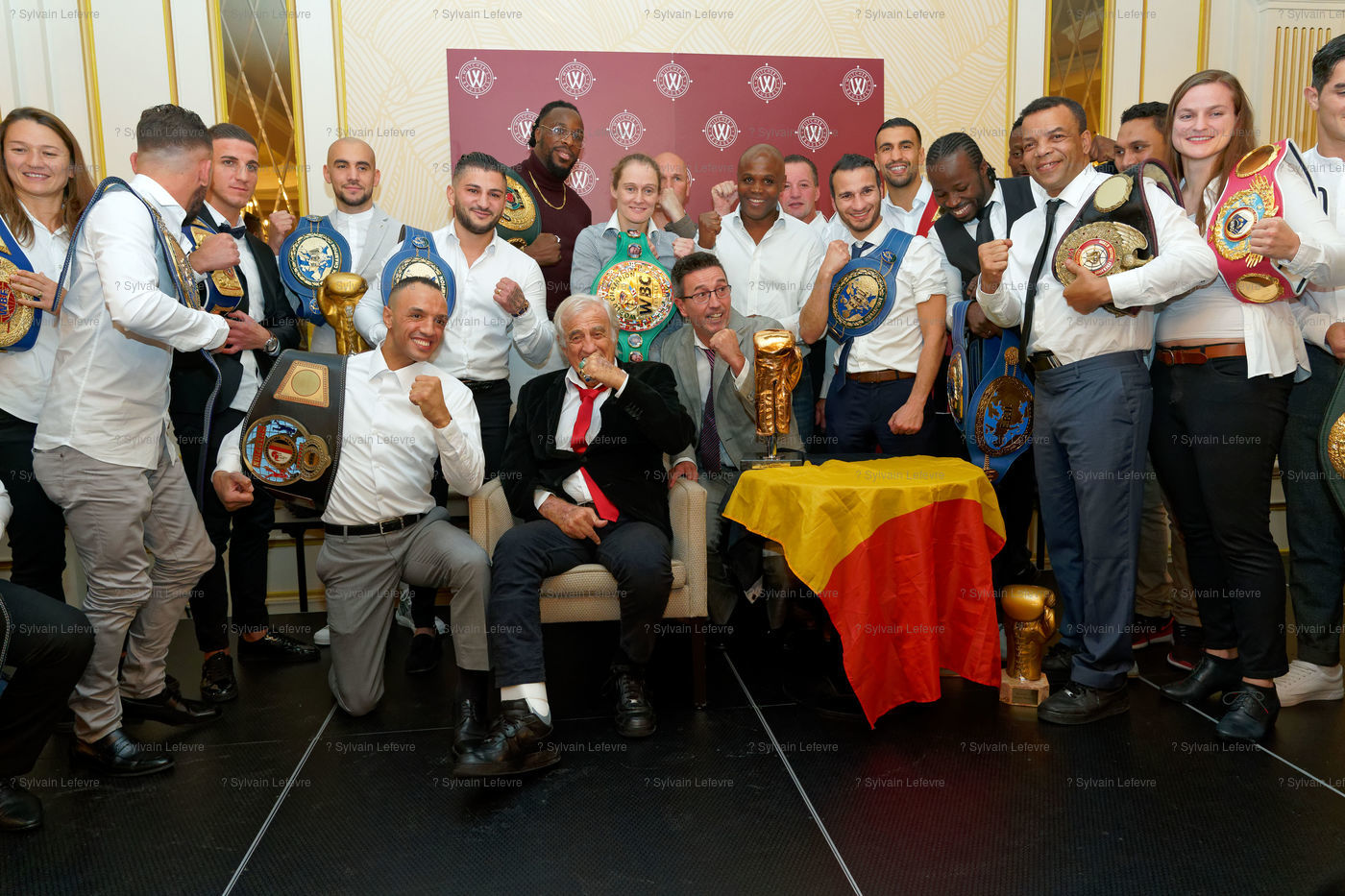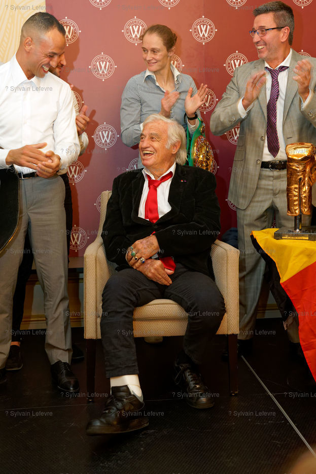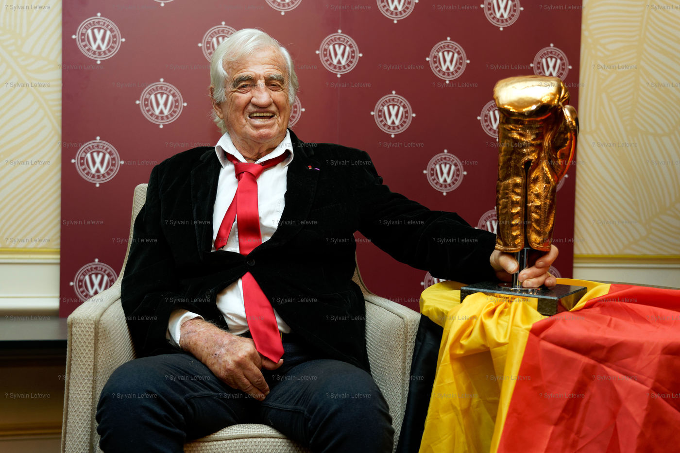 Jean-Paul Belmondo reçoit un Gant d'Or d'Honneur lors de la cérémonie des Gants d'Or à Bruxelles le 18 octobre 2019. De nombreux champions sont venu honorer l'acteur.