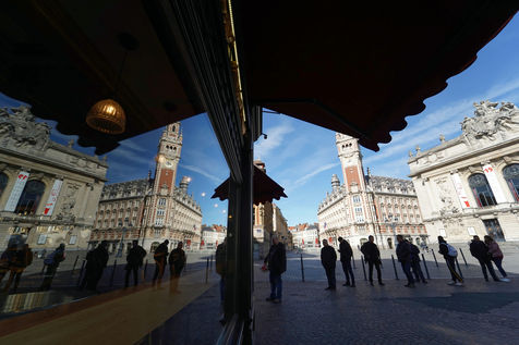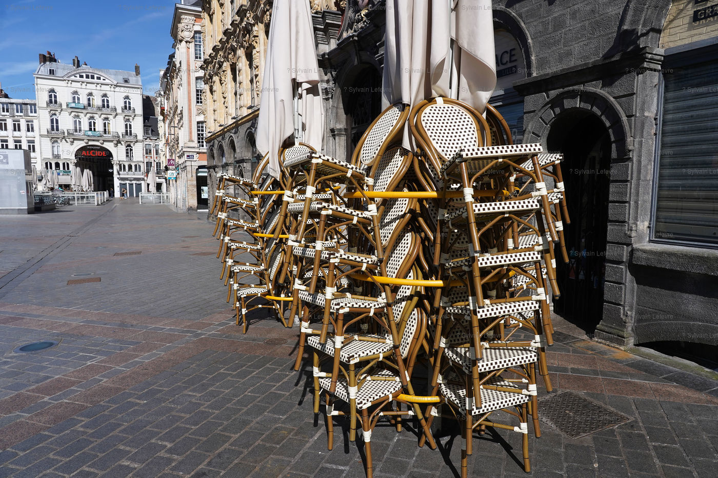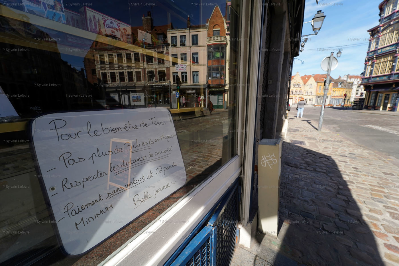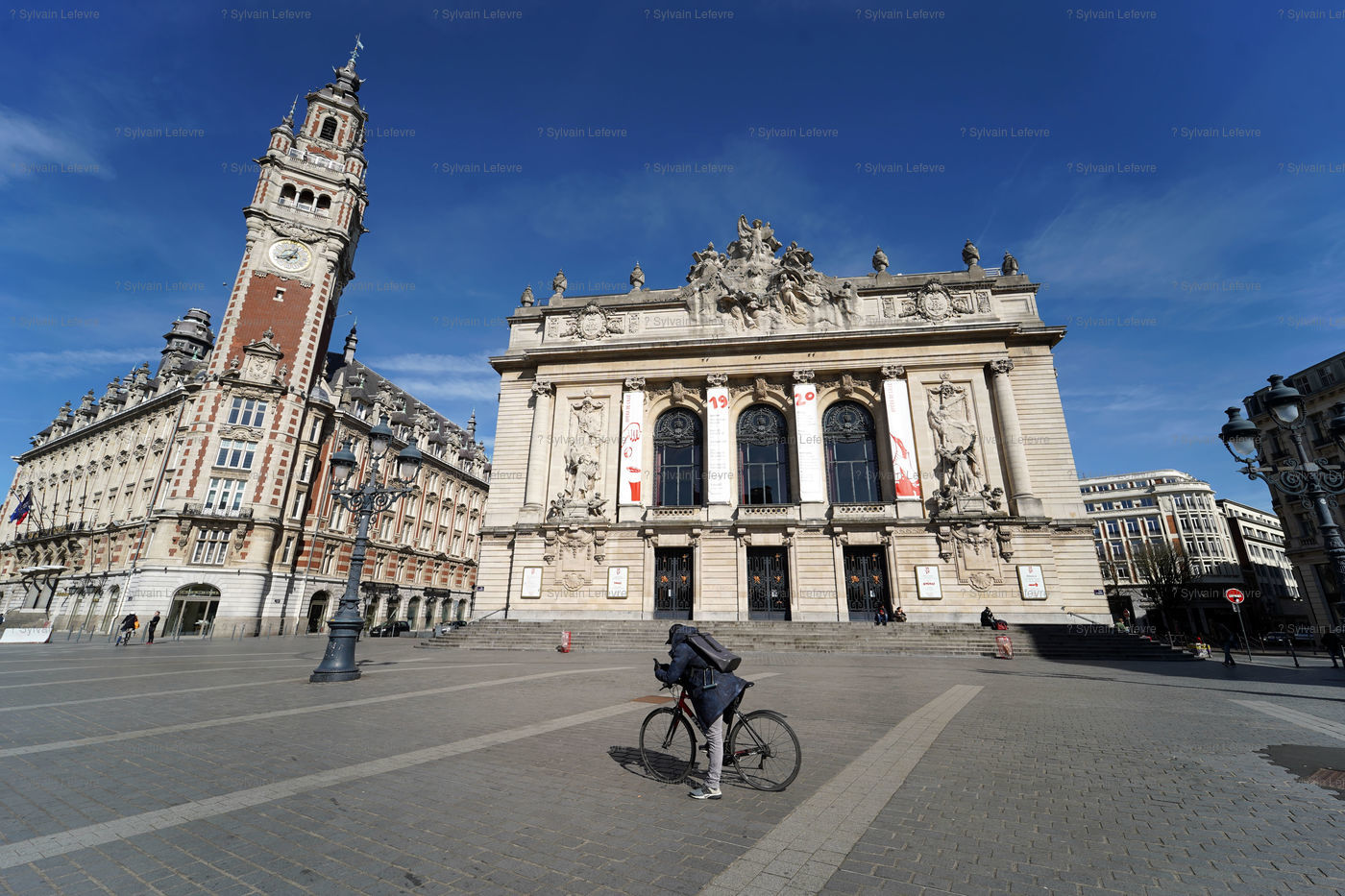 a midi le 1er jour de la mise en place des dispositions de confinement strictes decidees par le gouvernement pour lutter contre l'epidemie de Covid-19, Lille, le 17 mars 2020.