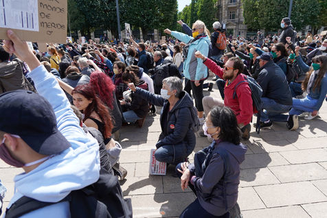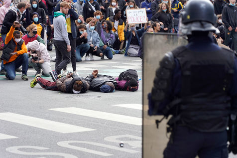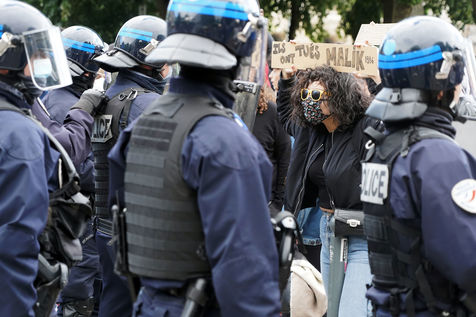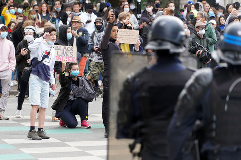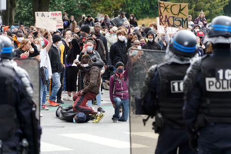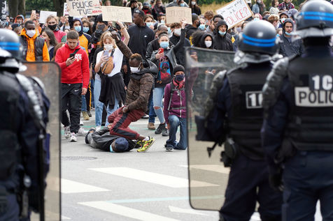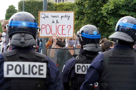 People attend a banned demonstration in memory of Adama Traore, a 24-year-old black Frenchman who died in a 2016 police operation which some have likened to the death of George Floyd in the United States, in Lille, France June 6, 2020