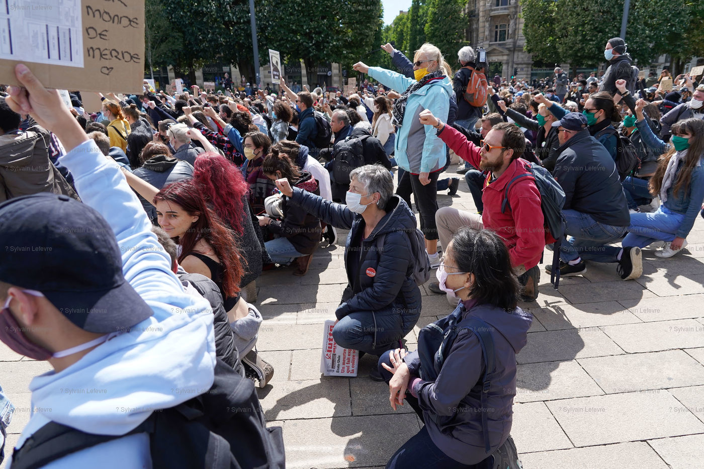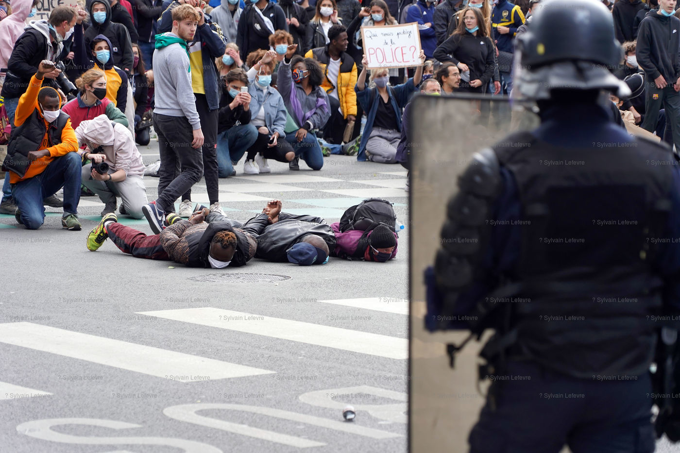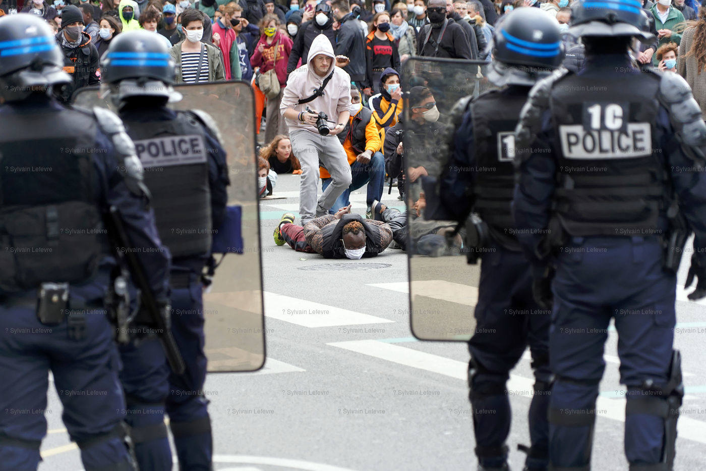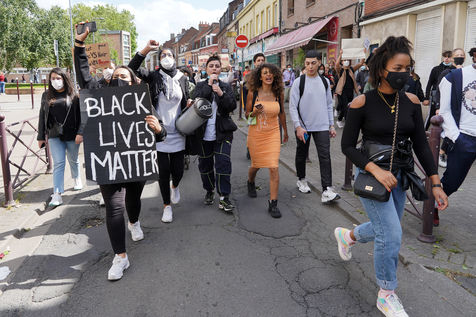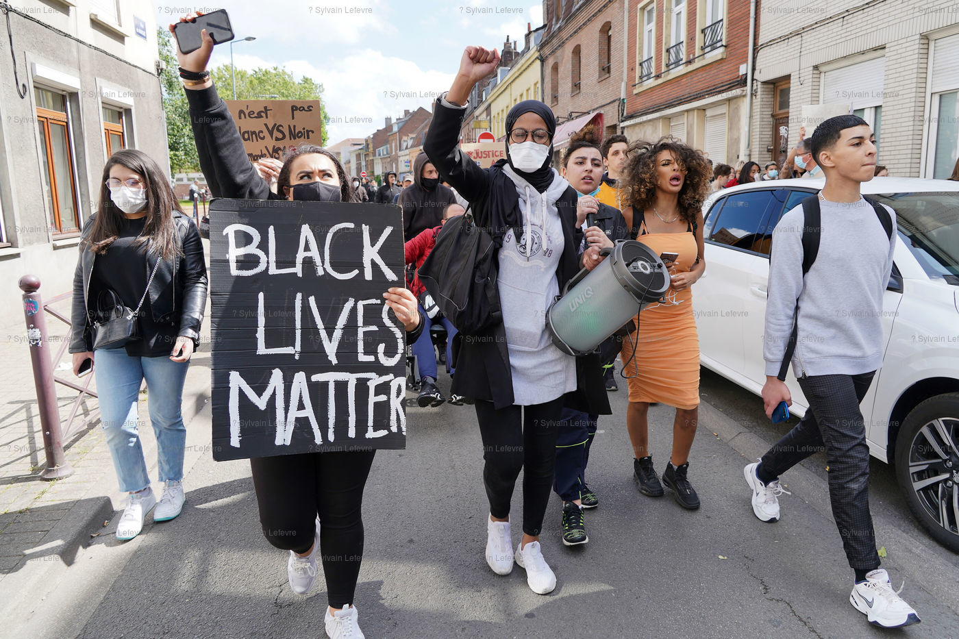 Manifestation interdite a la memoire d'Adama Traore, un Français noir de 24 ans qui est mort lors d'une operation de police en 2016 que certains ont assimile a la mort de George Floyd aux États-Unis, à Lille, en France, le 6 juin 2020