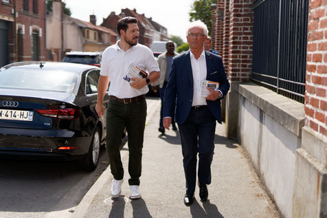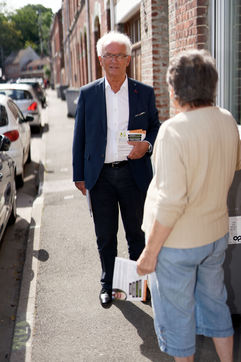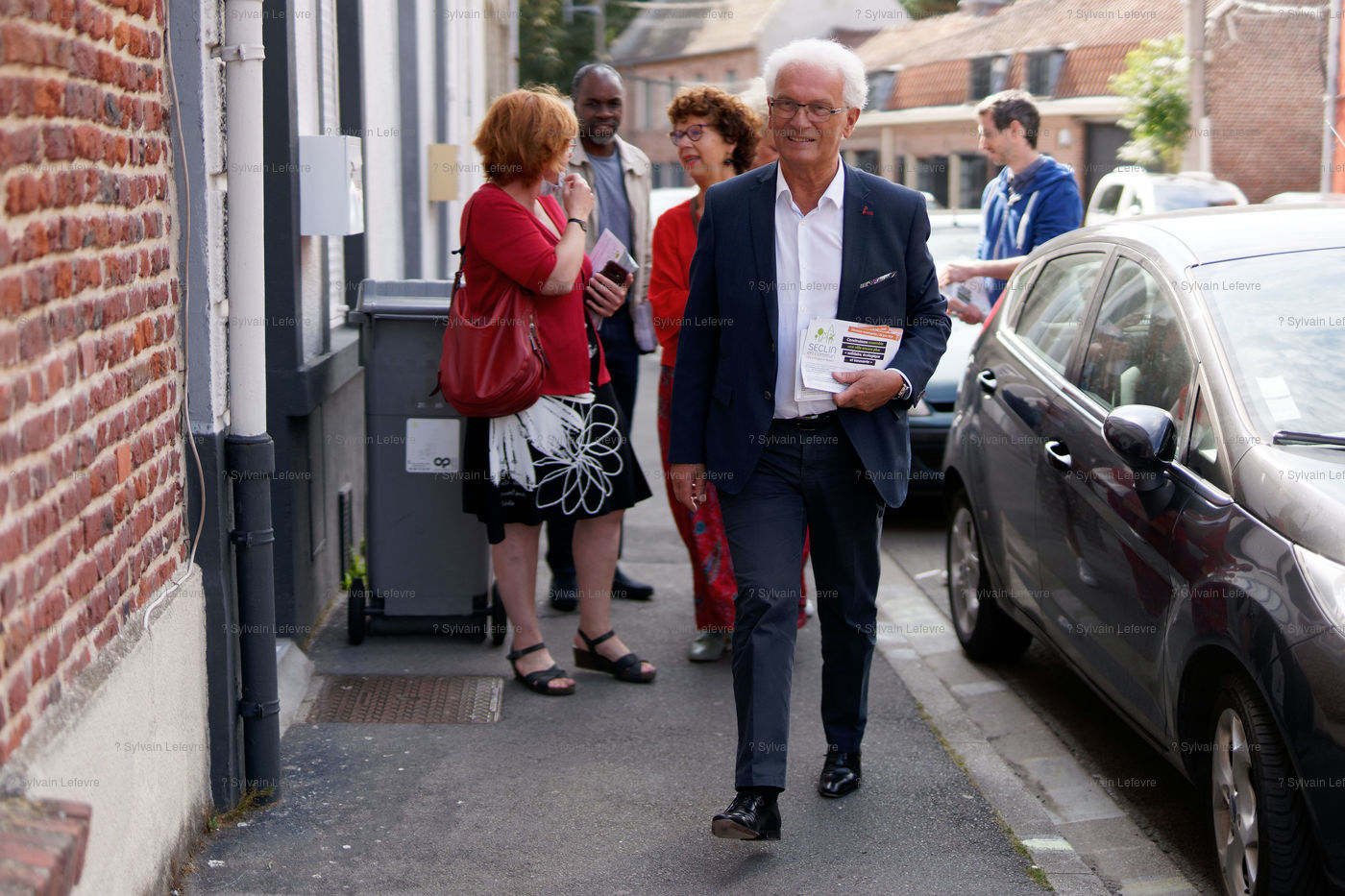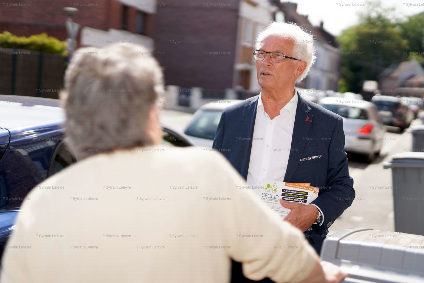 Bernard Debreu (PCF), maire sortant, en campagne dans les rues de la ville en prevision du 2nd tour des elections municpales de 2020, le 20 juin 2020.