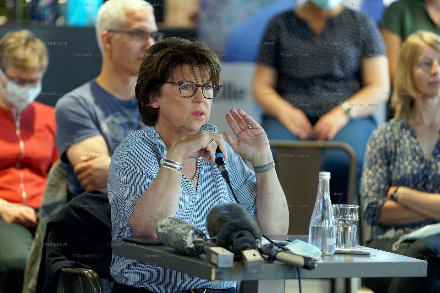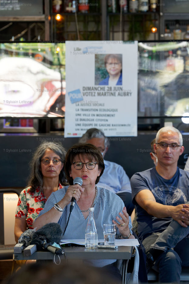 Conference de presse de Martine Aubry, maire sortante PS, a Lille le 24 Juin 2020 en vue du 2nd tour des elections municipales.