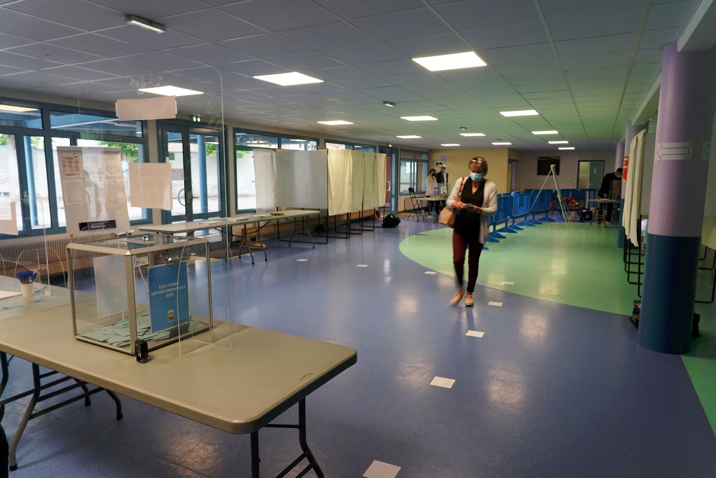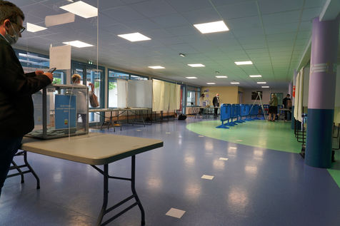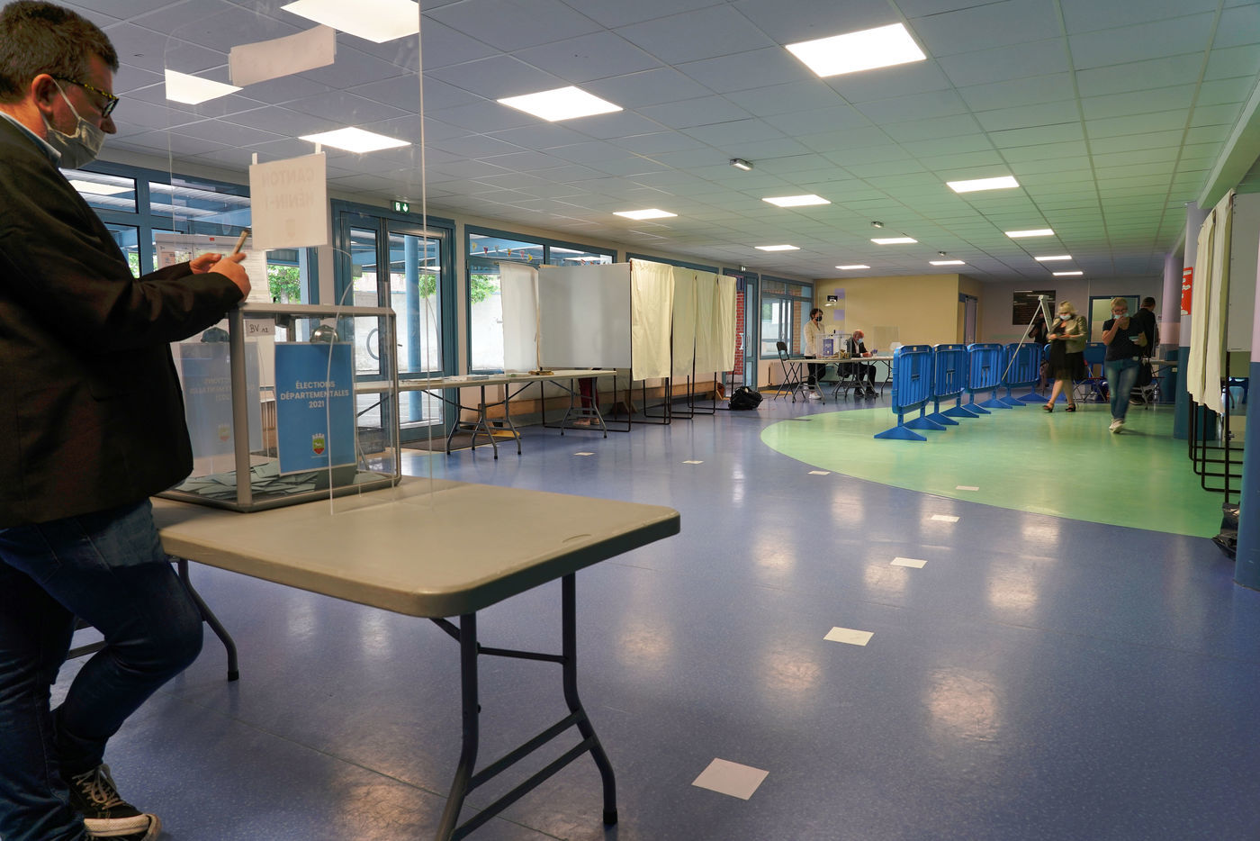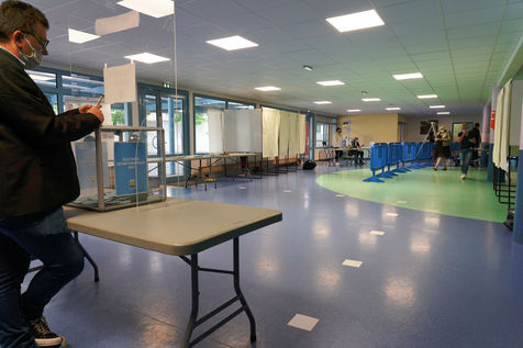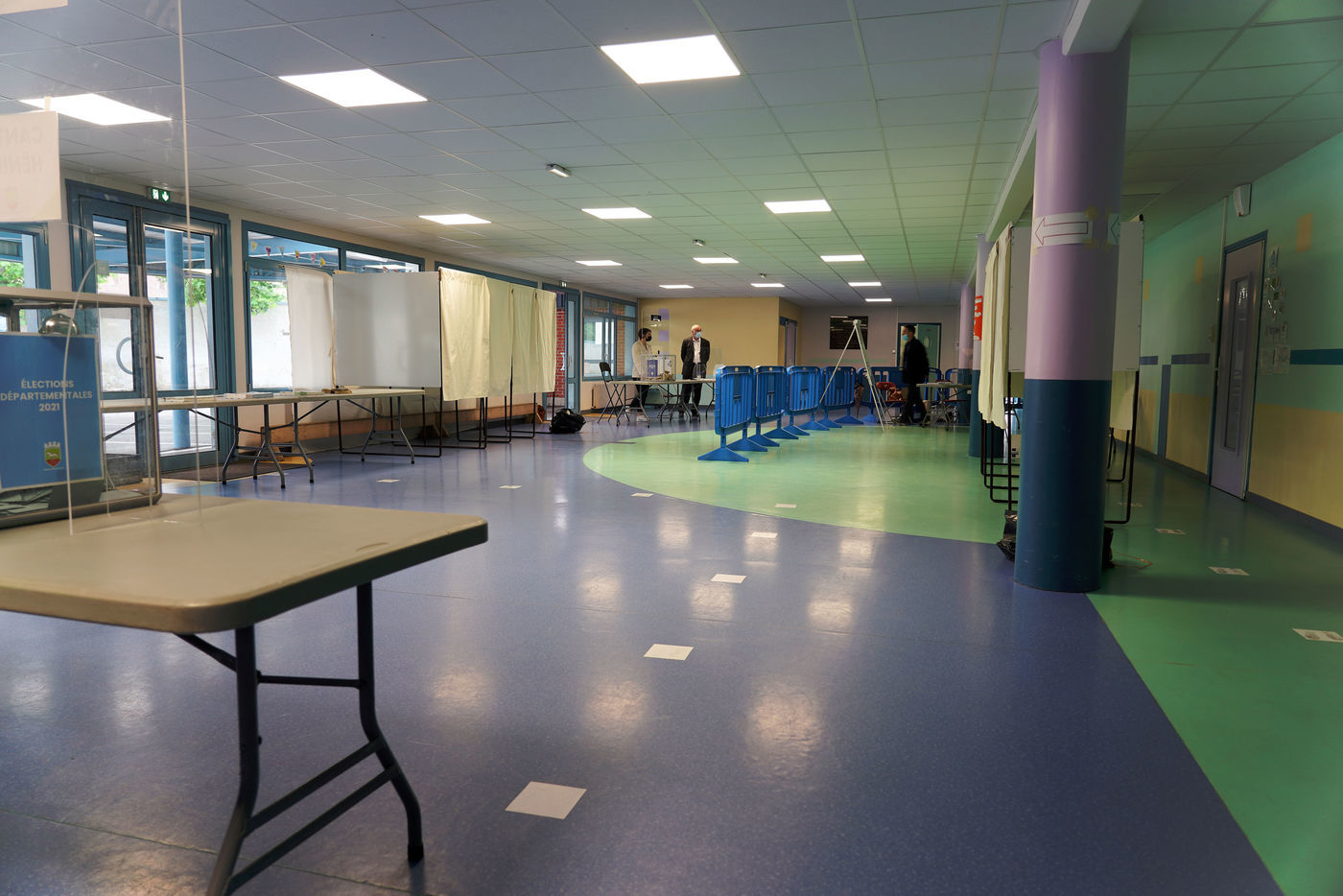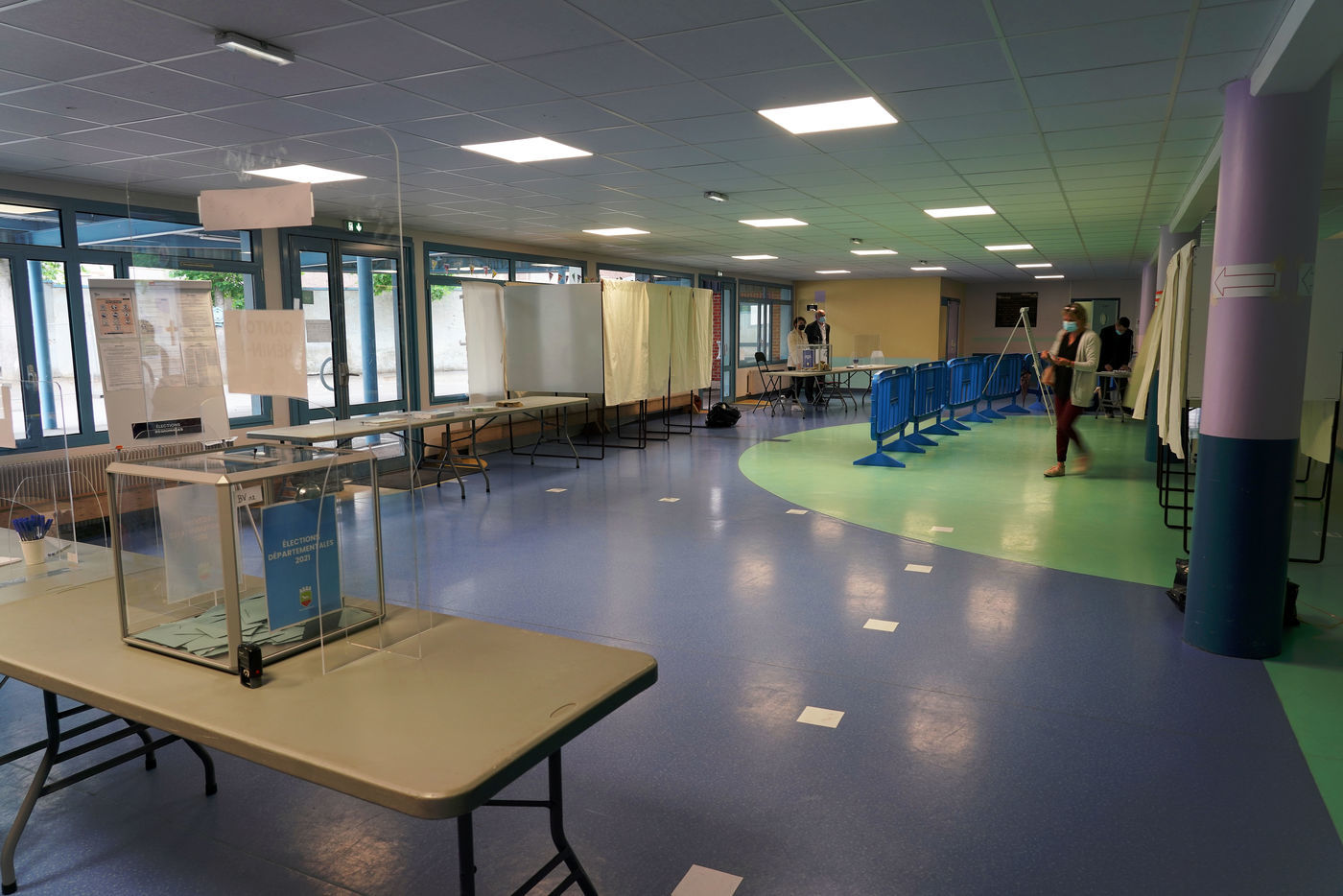 Ambiance inside an empty polling station in Henin-Beaumont, France, on June 27, 2021 for the 2nd round of regional elections.