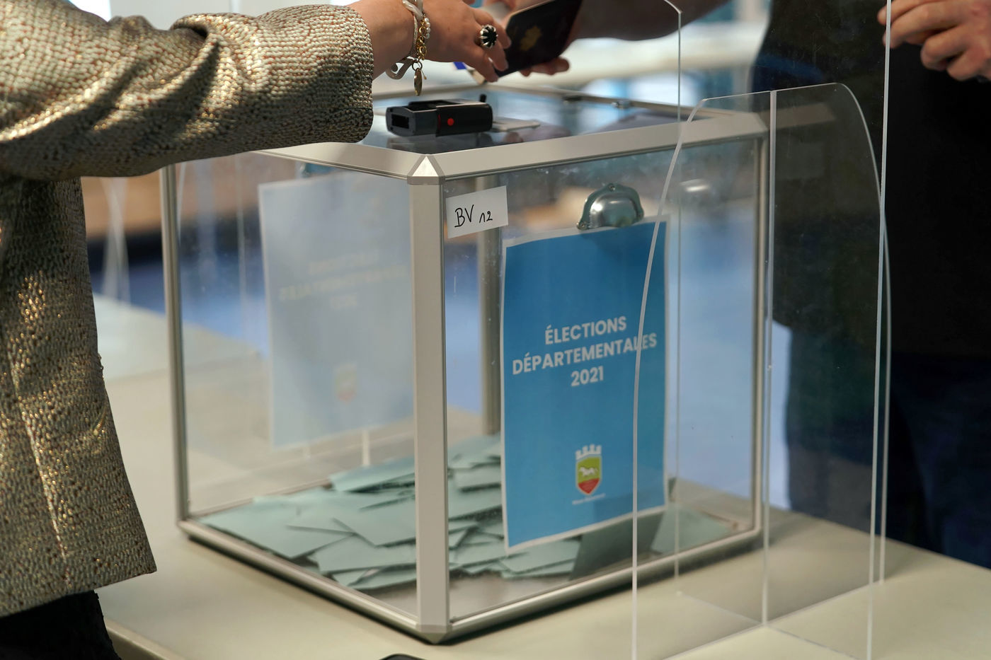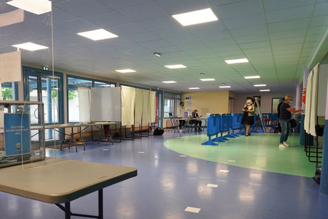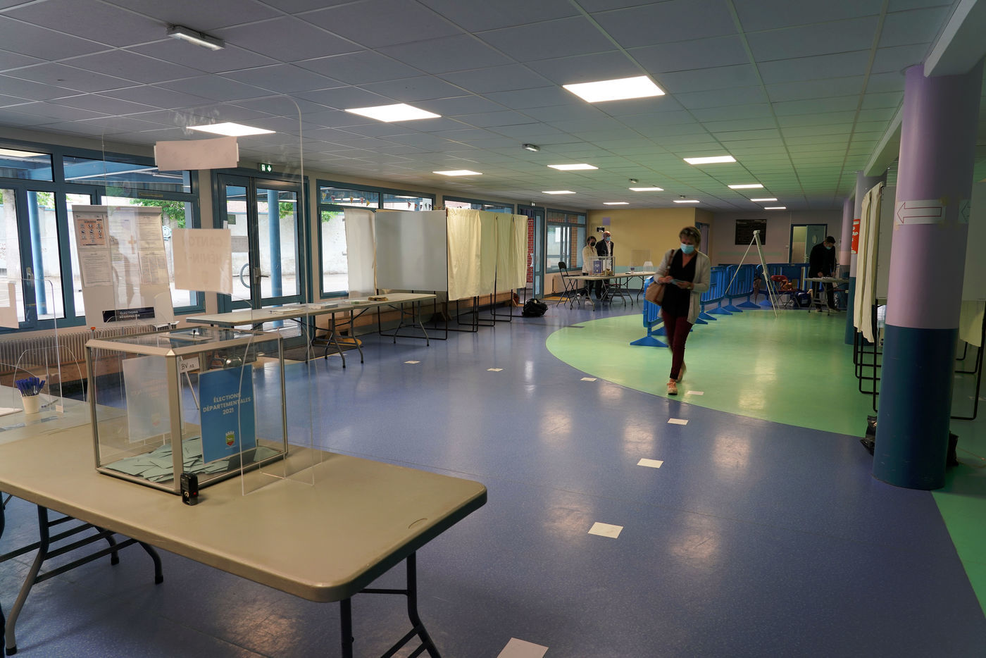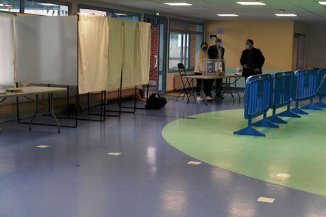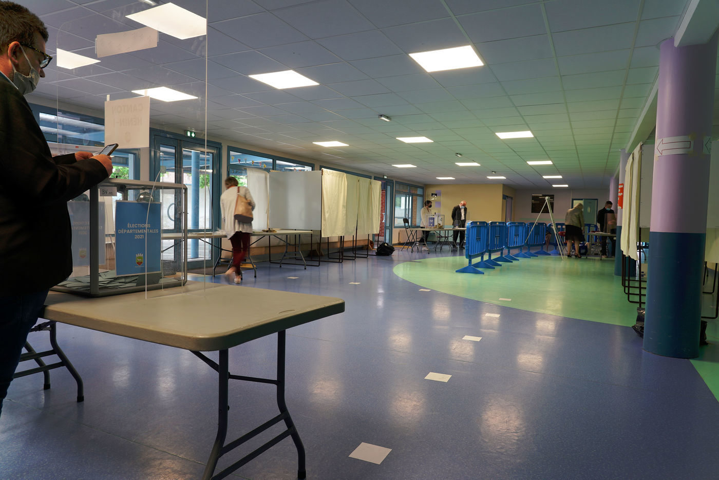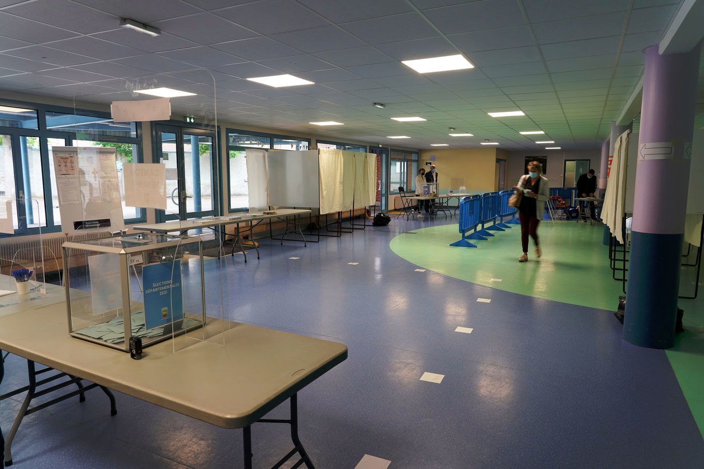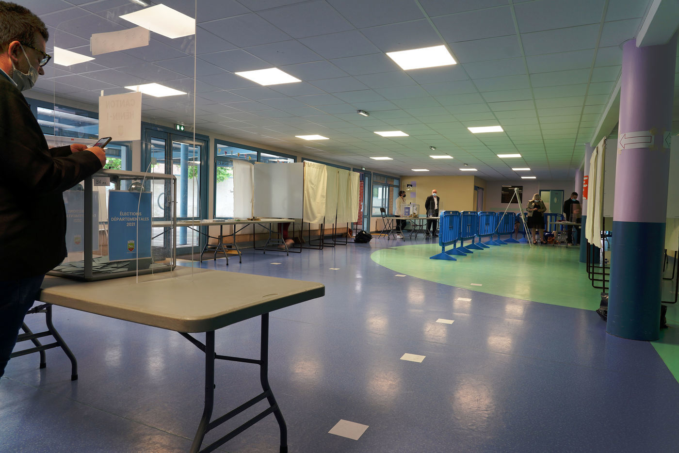 Ambiance inside an empty polling station in Henin-Beaumont, France, on June 27, 2021 for the 2nd round of regional elections.