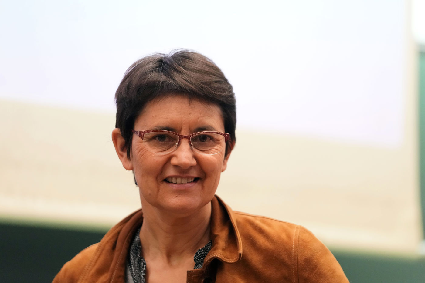 La dirigeante du parti d'extrême gauche français Lutte Ouvrière et candidate à l'élection présidentielle de 2022, Nathalie Arthaud, tient un meeting à l'université de Lille, à Villeneuve d'Ascq, dans le nord de la France, le 07 février 2022.