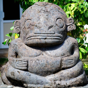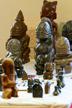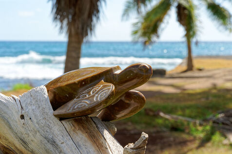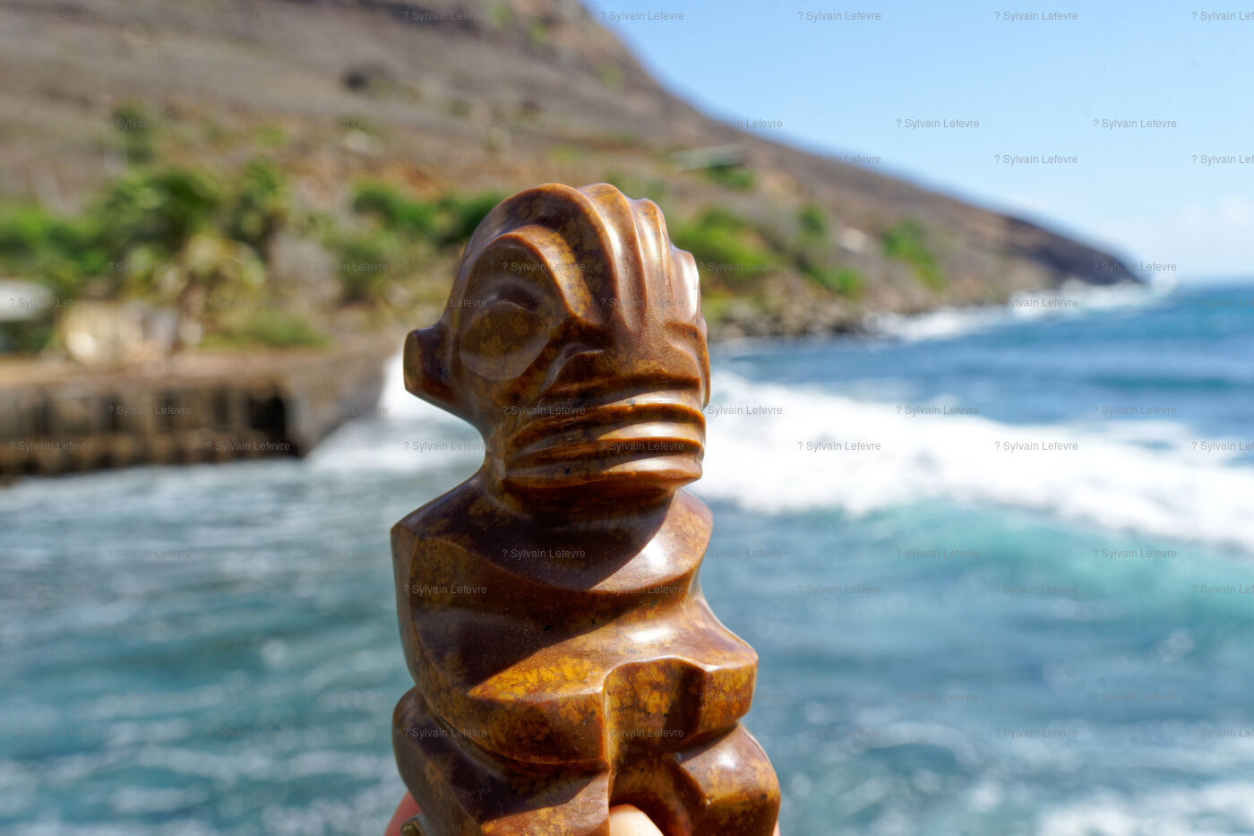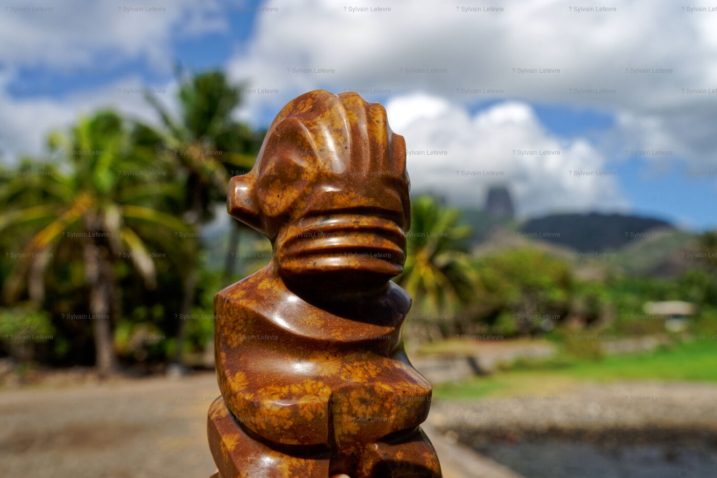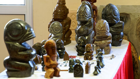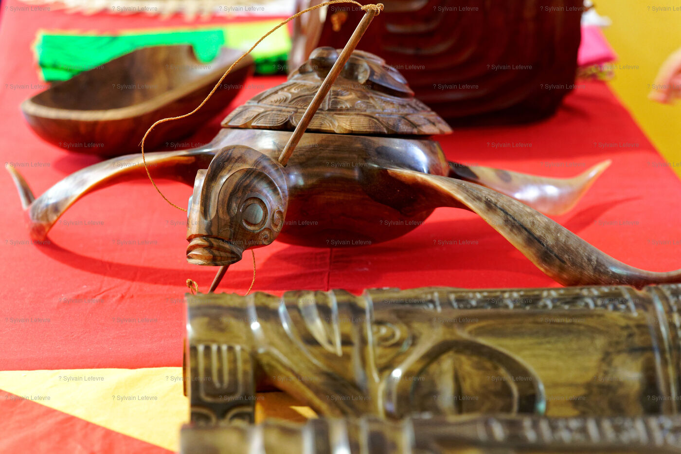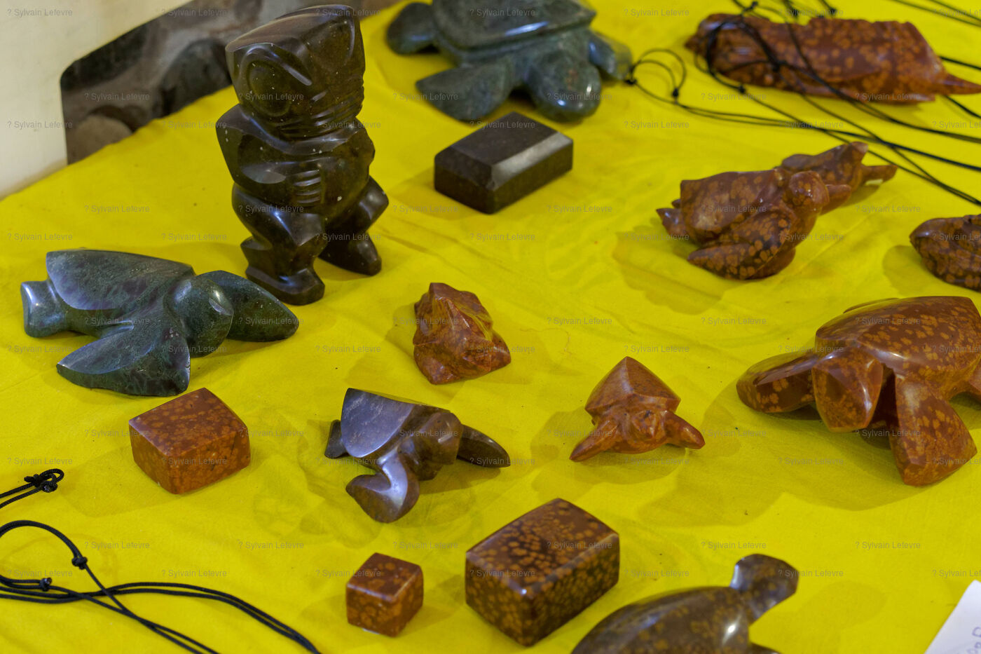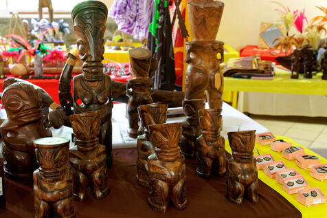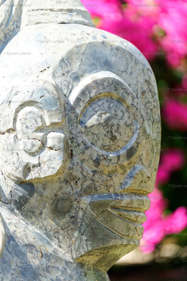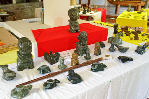 Marquesan sculptures using flower stones (garnet phonolithe) in Hakahau, on July 27, 2024 in Hakahau, Ua Pou island, Marquesas, French Polynesia. In French Polynesia (Pacific Ocean), on the island of Ua Pou, sculptors use ancestral techniques to bring out all the beauty of garnet phonolite. Different from the others, this volcanic igneous rock is here mixed with garnet. The encrustation of minerals gives the impression of seeing petals appear in the stone. Extremely rare, it has been identified in only a few places around the world: in French Polynesia, Brazil, Ethiopia and in the Massif Central (France, Europe). There are several colors of garnet phonolite: black, yellow and red. In the Marquesas archipelago, the rock is cut and then sculpted in the shape of a bowl, a tiki or marine animals. The UNESCO World Heritage Committee will hold its 46th session from July 21 to 31, 2024 in New Delhi (India). It will examine the nominations of 27 sites for inclusion on the World Heritage List, including Te Henua Enata - Les Iles Marquises (Marquesas Islands) presented by France.