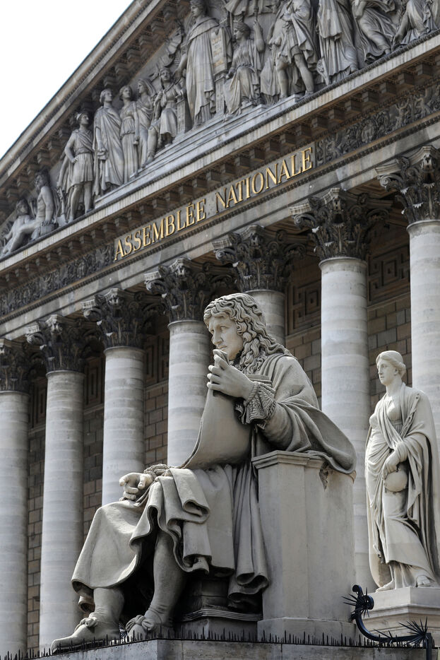 llustration of the statue of Jean Baptiste Colbert in front of the National Assembly in Paris