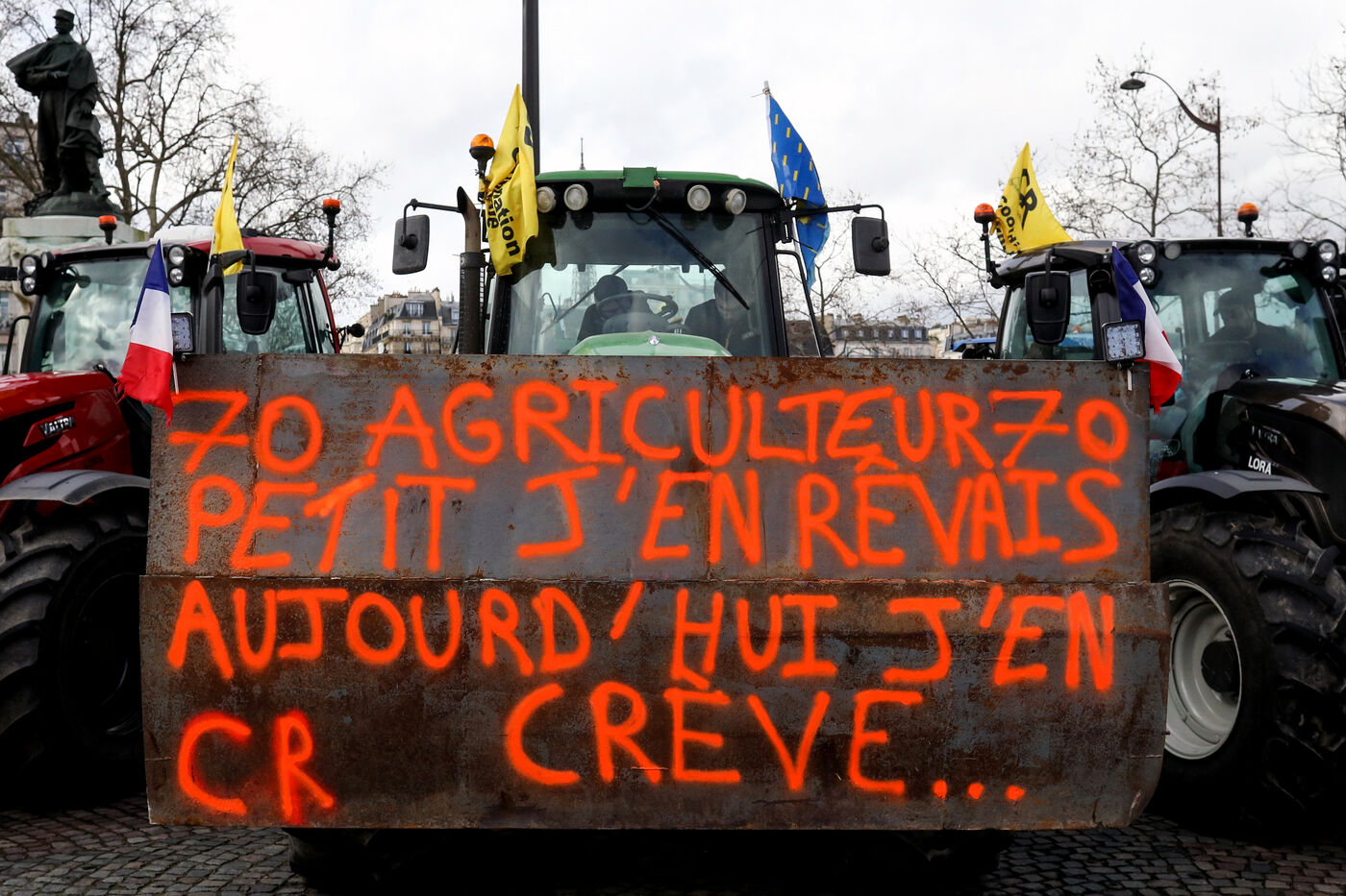 French farmers take part in a demonstration organised by the Coordination Rurale before the opening of the 60th International Agricultural Show