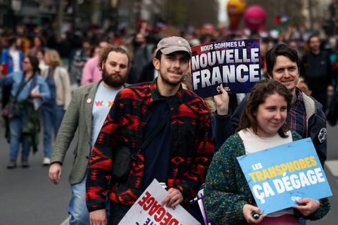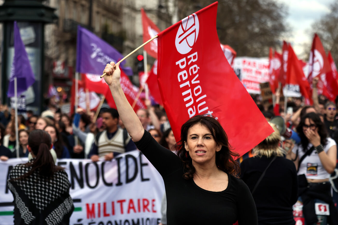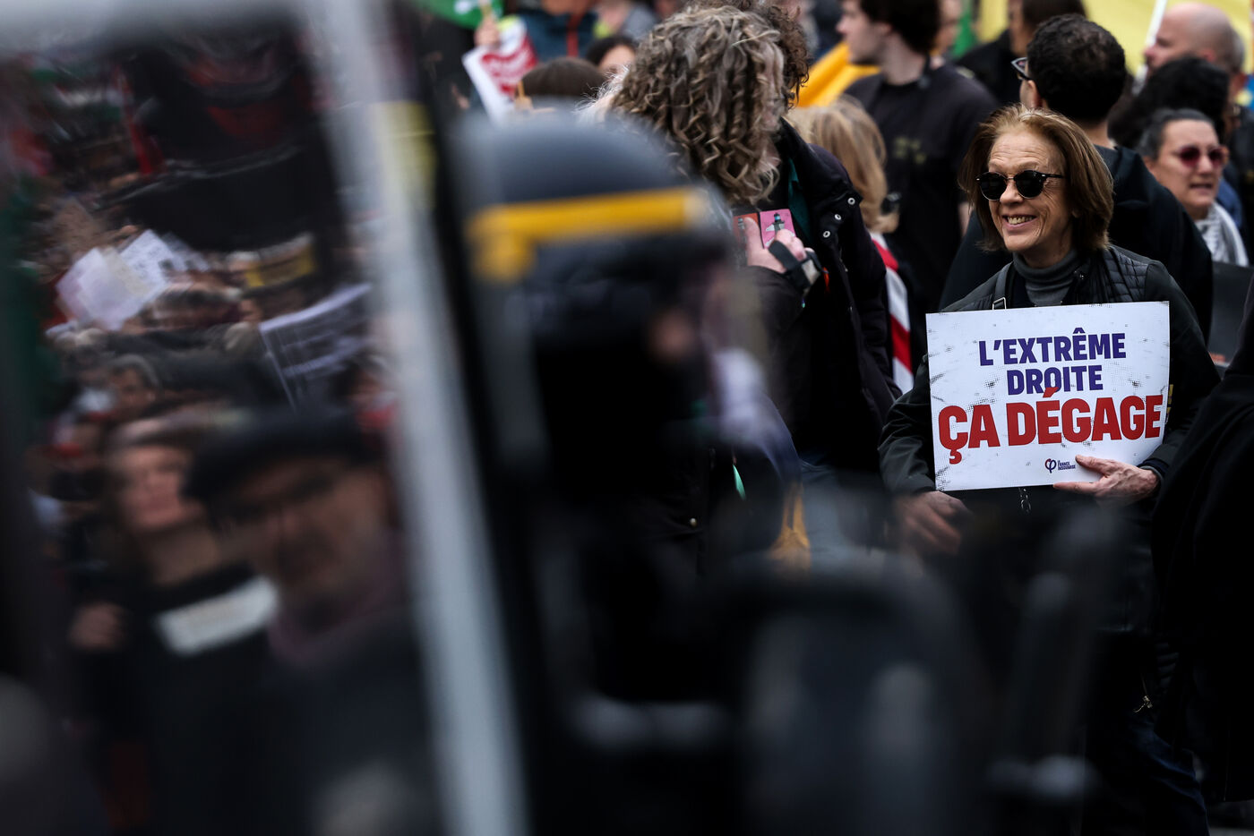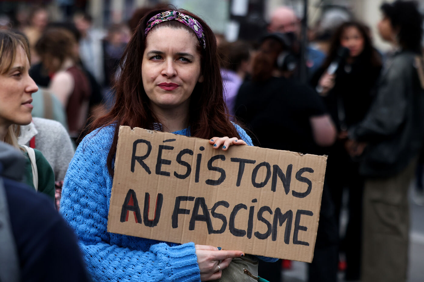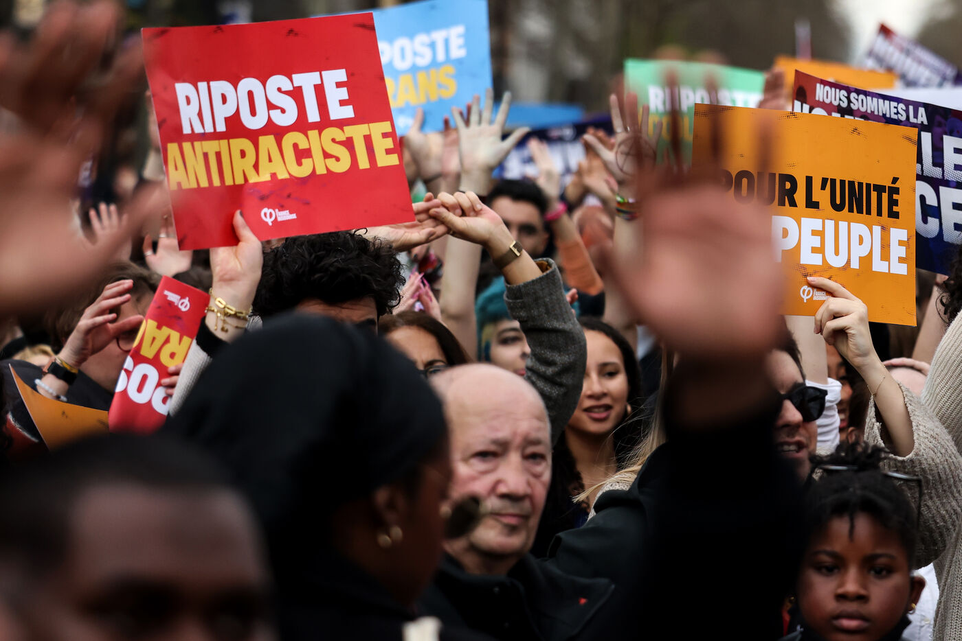 Protestors attend a demonstration in Paris on March 22 2025 as part of the international day against racism and fascism.
