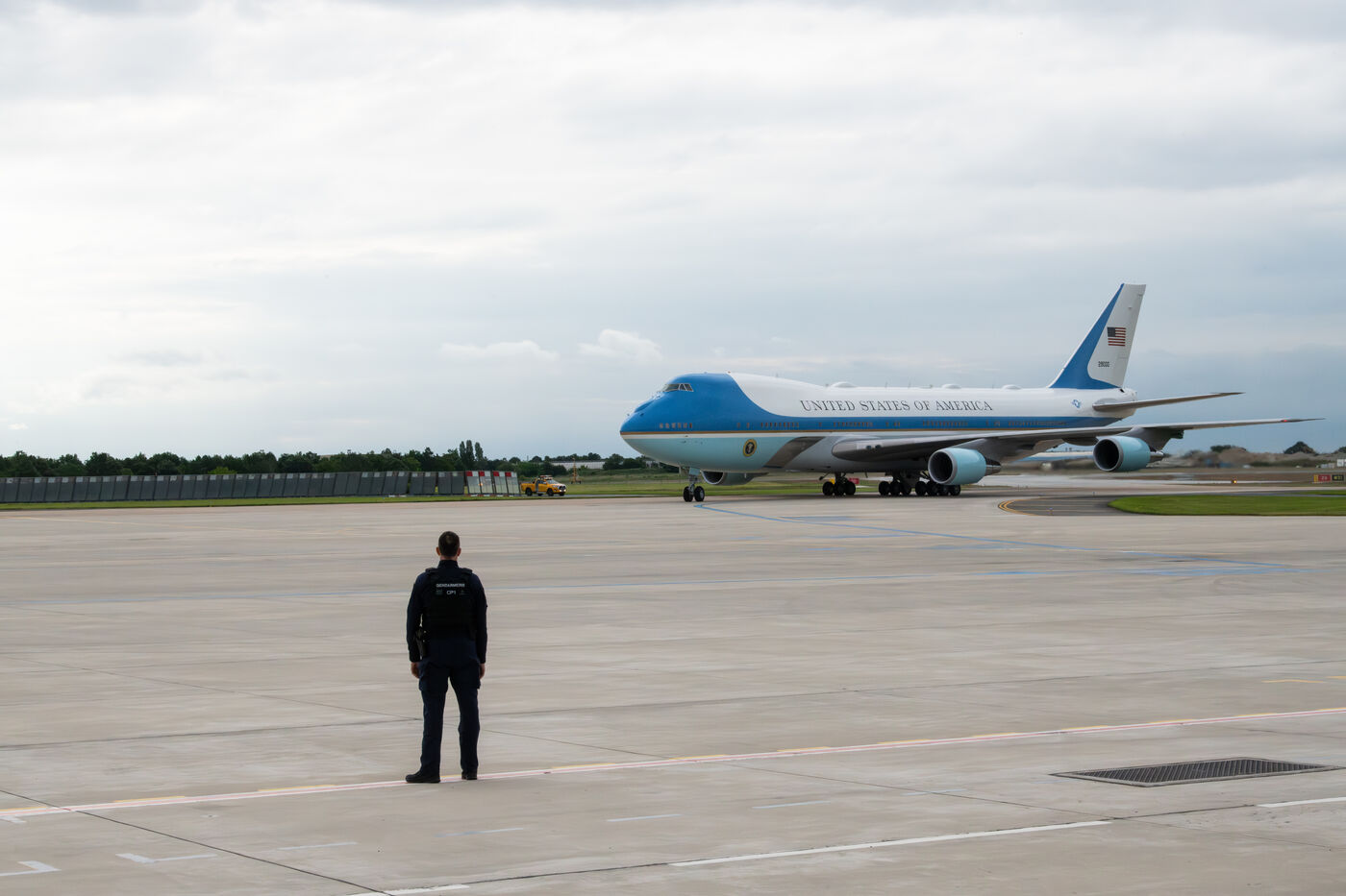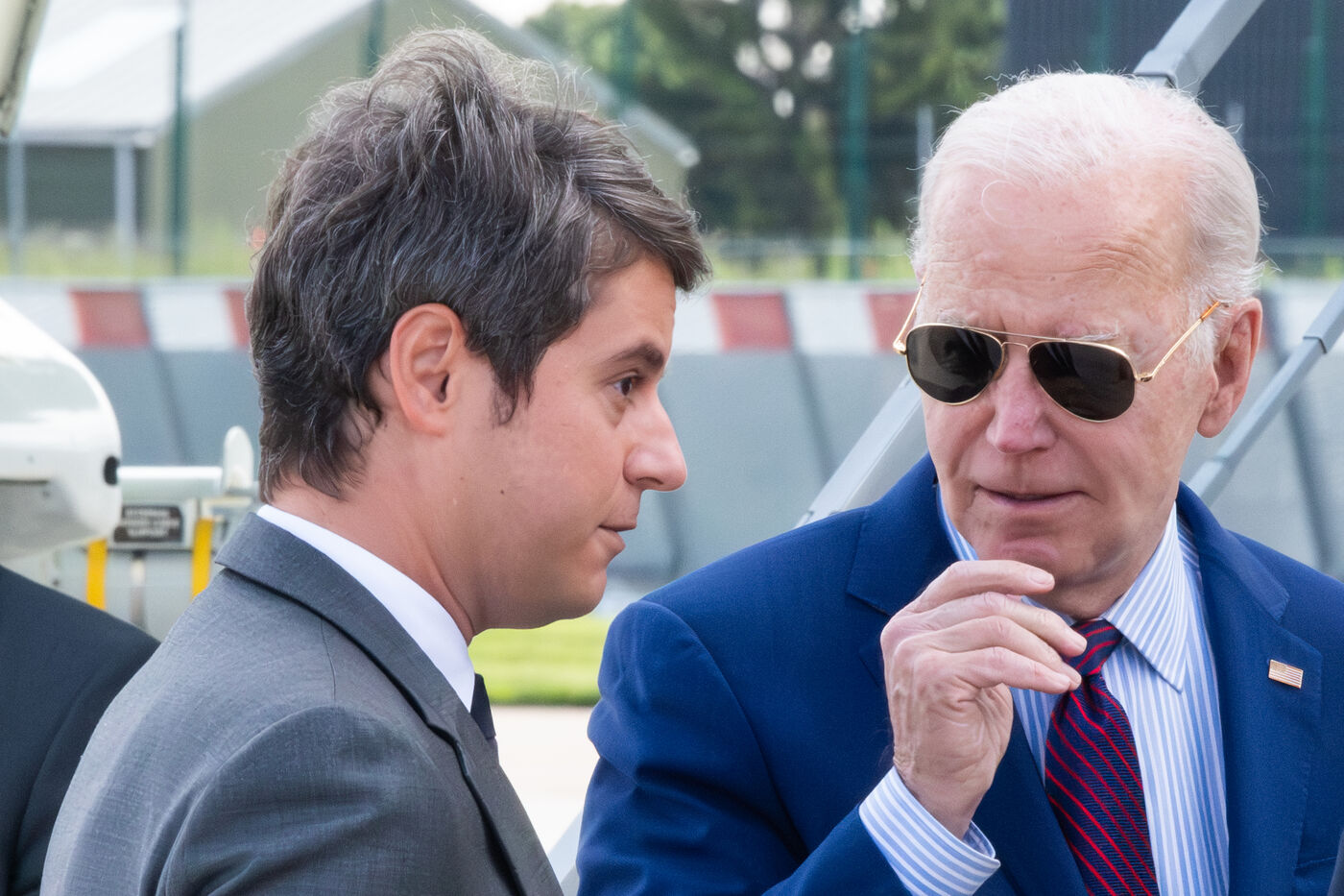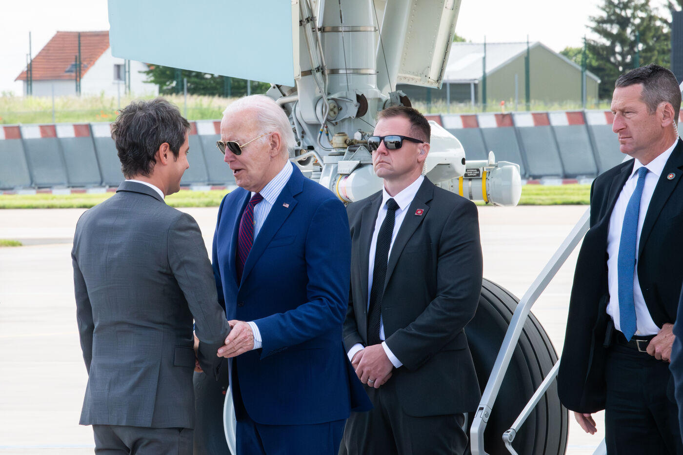 As part of the commemoration of the 80th anniversary of the D-Day landings on 6 June, Joe Biden, President of the United States of America, arrives in France at the Pavillon d'Honneur at Paris-Orly airport. He is welcomed by the Prime Minister, Gabriel Attal.