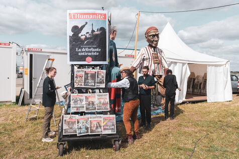Retour sur la préparation et la déambulation de la compagnie Les Grandes Personnes lors de la dernière Fête de l'Humanité. Cette compagnie a préparé une déambulation de marionnettes géantes et mis à l'honneur plusieurs Unes emblématiques du journal depuis sa création.