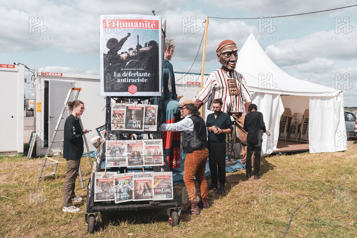 A look back at Les Grandes Personnes' preparations for the last Fête de l'Humanité. The company prepared a giant puppet show, featuring several of the newspaper's most emblematic front pages since its inception.